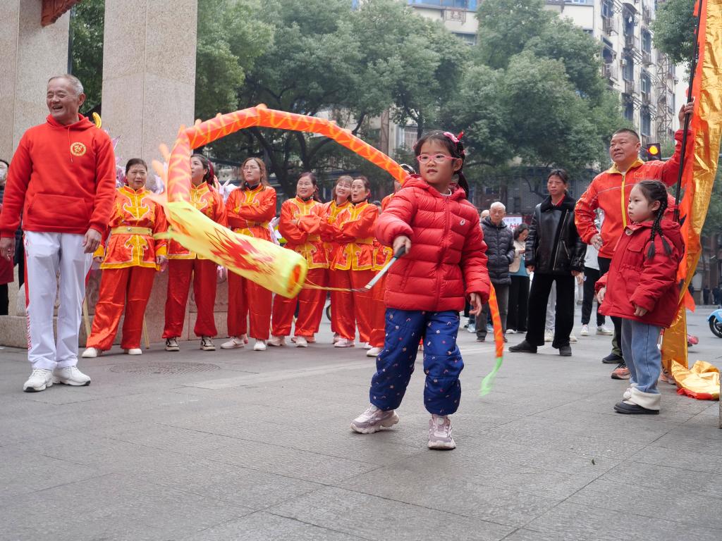 70岁的熊福根是彩带龙的首批“老年粉丝”之一。龙身画圈寓意财源滚滚,对龙、背龙、跨龙、推龙等一系列花式动作令人目不暇接……他的拿手绝活是踩着轮滑舞龙,每次表演都引来人们阵阵喝彩。