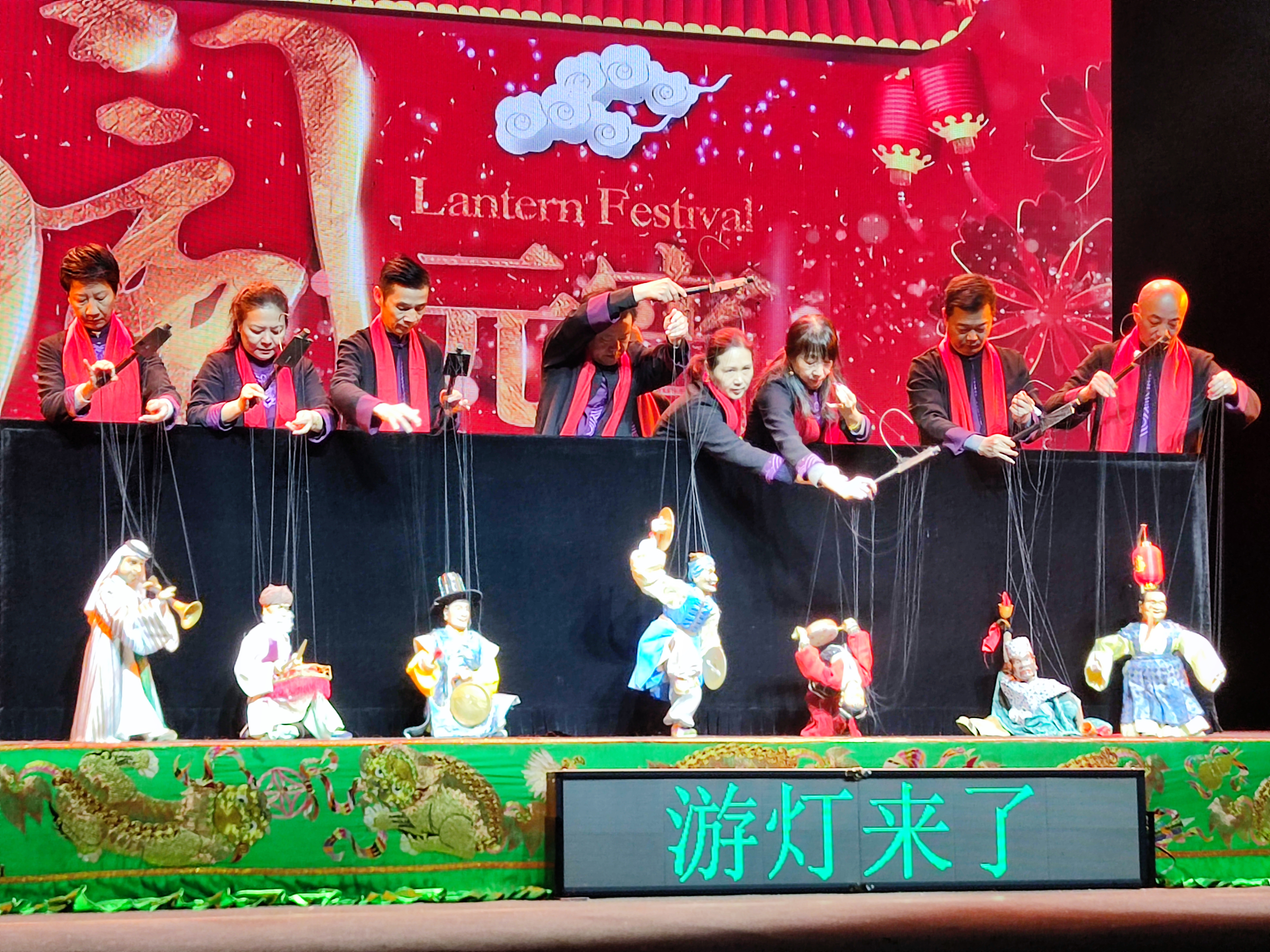 春节期间,泉州市木偶剧团提线木偶戏表演现场。(提线木偶戏国家级非遗传承人陈应鸿供图)