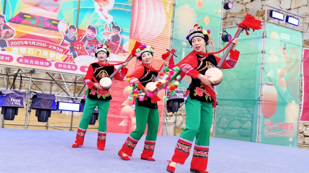 新春假期,大理石门关新春花灯游园会展现地方非遗民俗。(大理石门关景区供图)