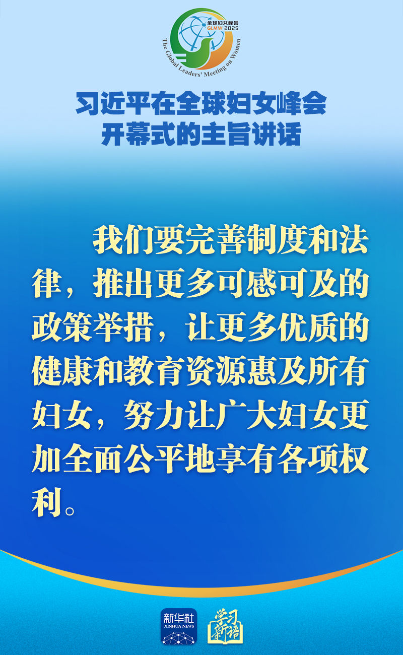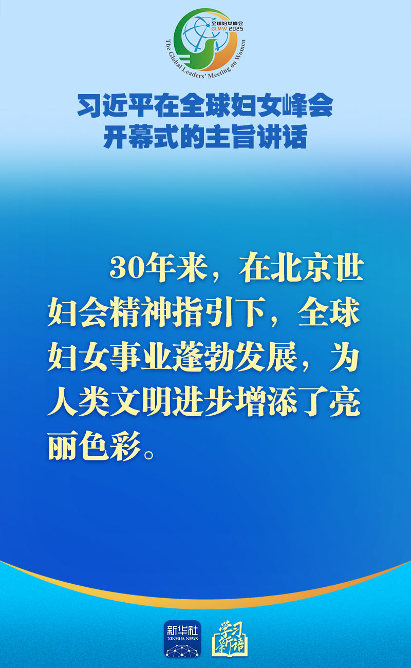 10月13日上午,国家主席习近平在北京国家会议中心出席全球妇女峰会开幕式并发表题为《弘扬北京世妇会精神 加速妇女全面发展新进程》的主旨讲话。讲话金句,一起学习!