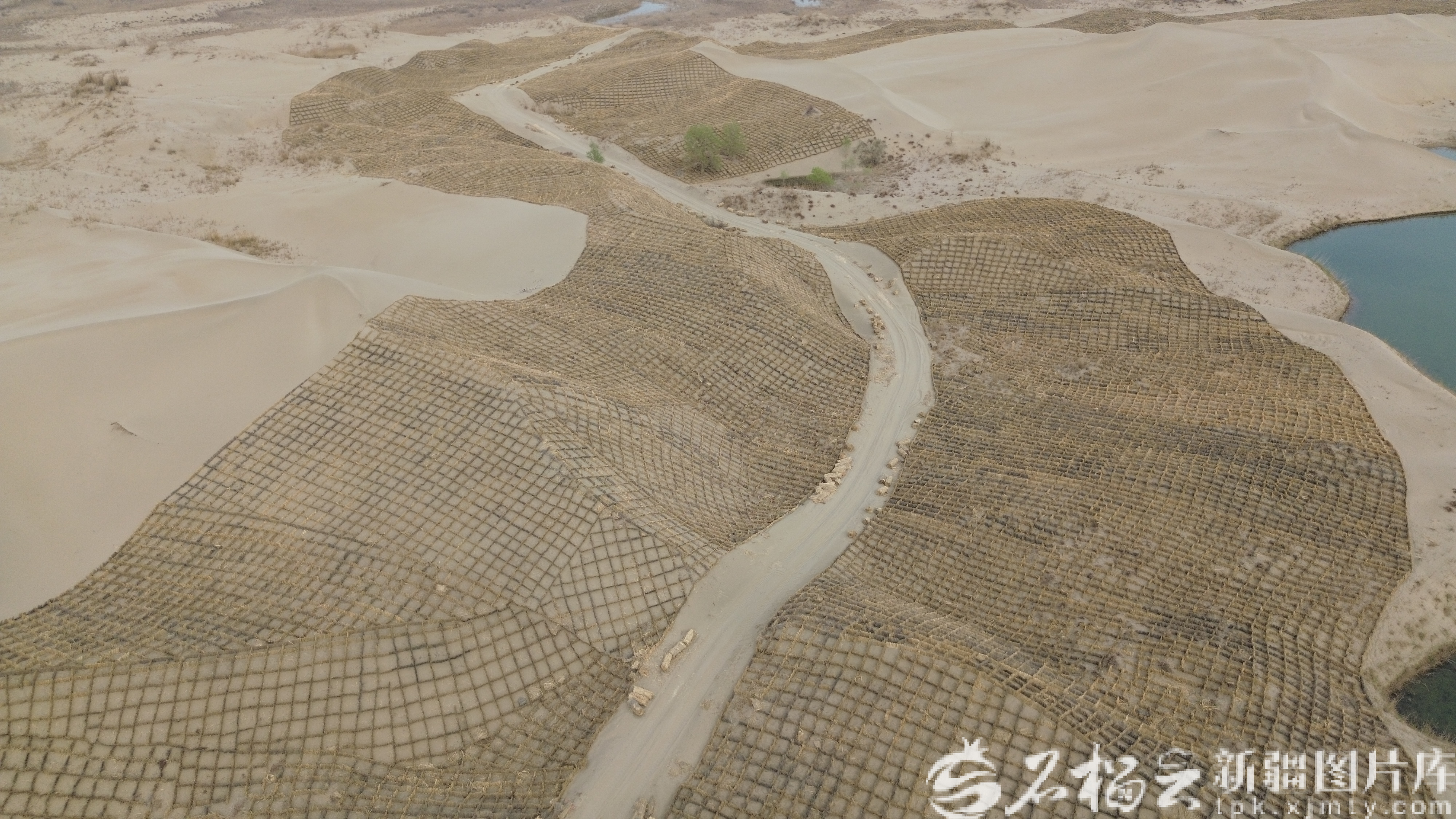 图为中铁二十三局参建的塔克拉玛干沙漠锁边工程草方格生态屏障(资料图)。王志文摄