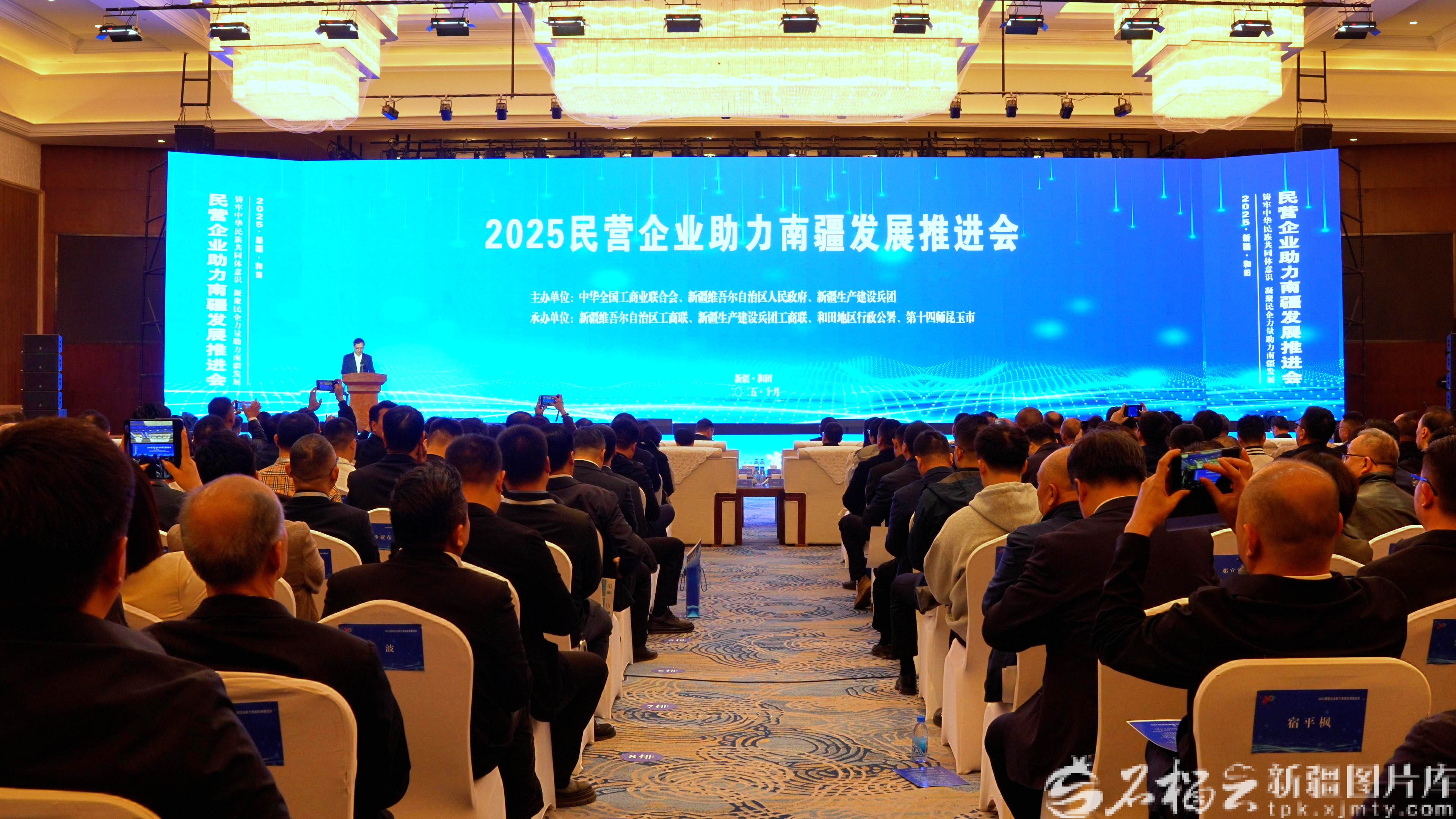 10月20日,2025民营企业助力南疆发展推进会在和田地区召开。来自全国工商联部分直属商会及企业的代表,来自援疆省市与相关省区市工商联及企业的代表约300人参加会议。