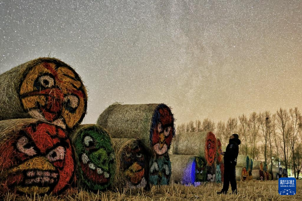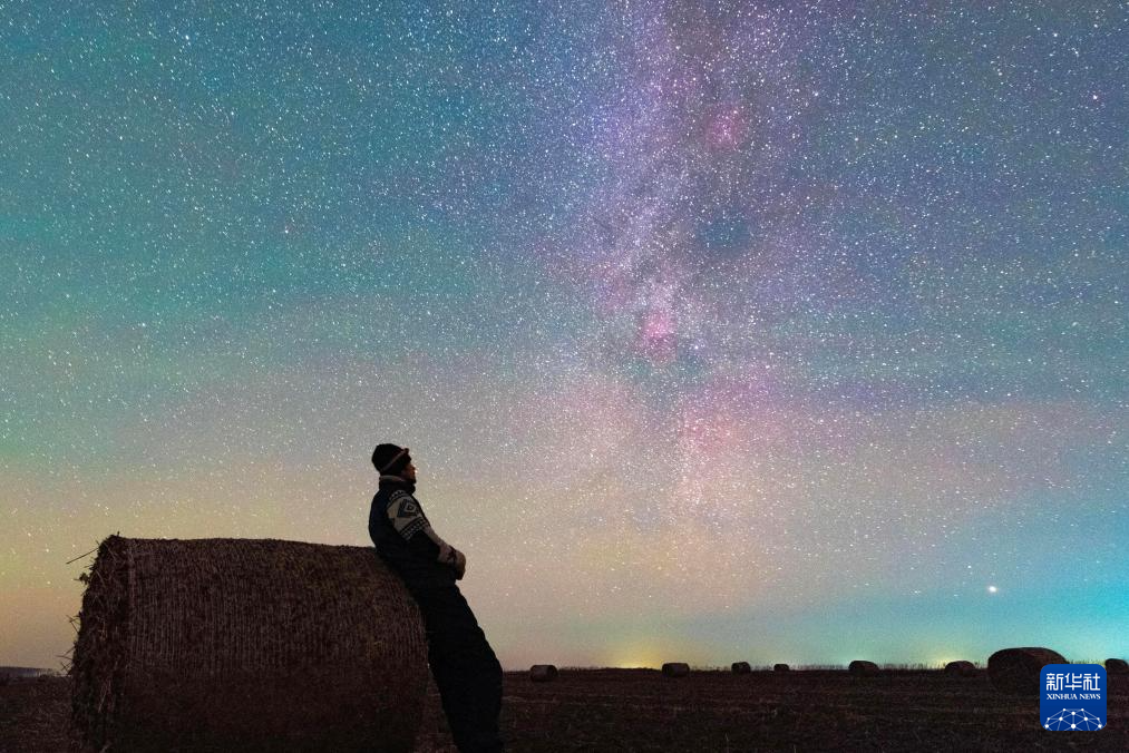 10月31日,摄影爱好者在黑龙江省同江市三江口梦想稻田文化公园观赏秋季银河。新华社发(刘万平摄)
