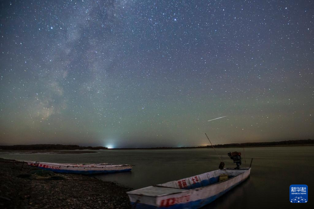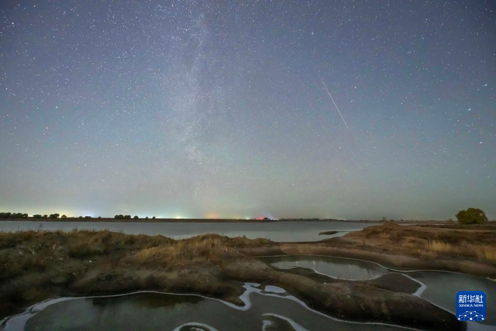 10月29日在黑龙江省齐齐哈尔市嫩江江畔拍摄的秋季银河。新华社发(王勇刚摄)