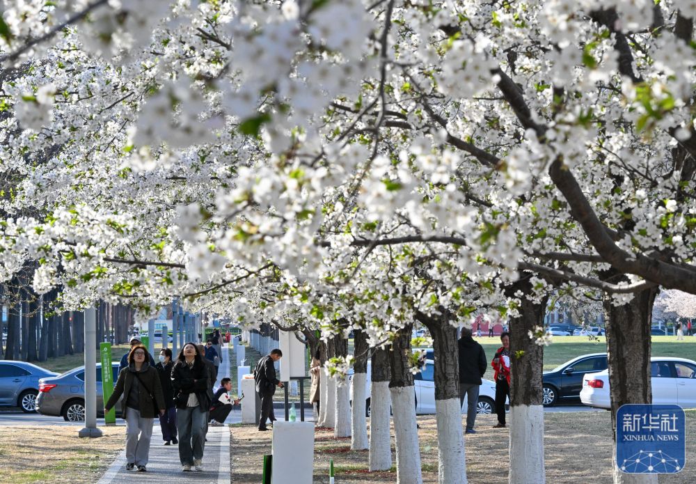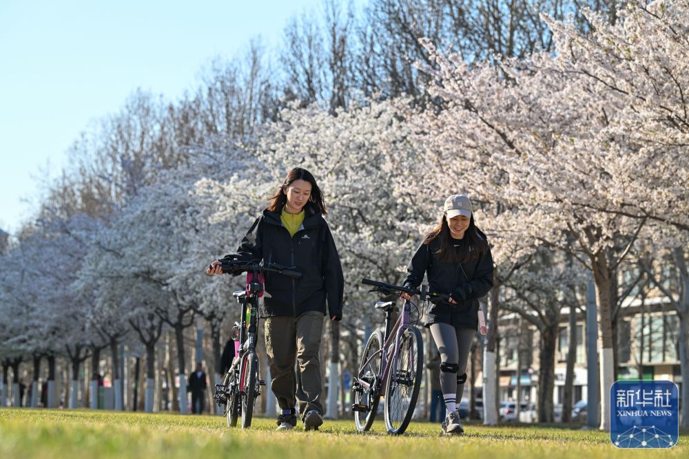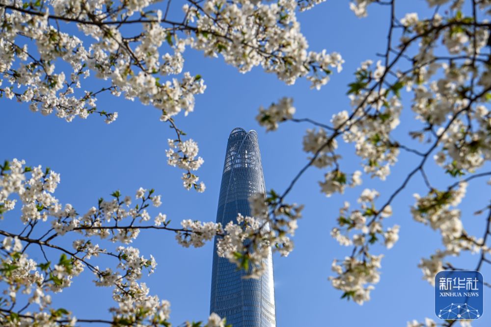 近日,位于天津市滨海新区泰达城市广场的樱花盛开,吸引众多市民游客出门赏花,感受春日美好时光。