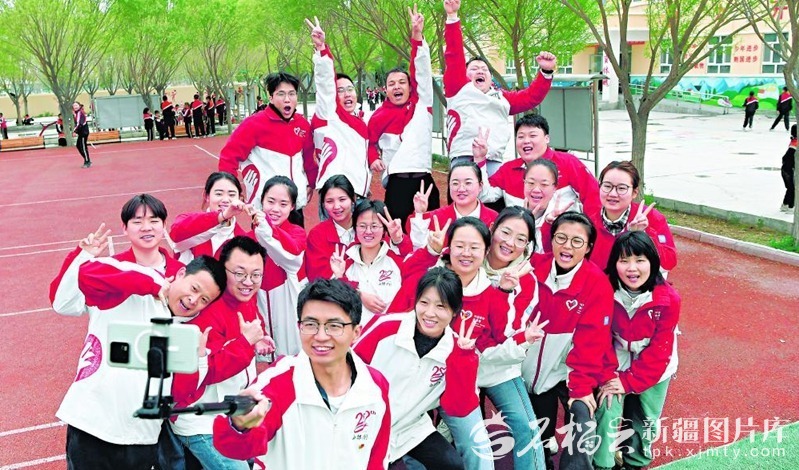 4月21日,阿图什市哈拉峻乡谢依特小学戍边支教西部计划志愿者服务队队员一起合影。