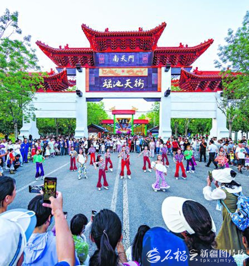 7月2日,游客在观看舞蹈表演。当日,阜康市沉浸式体验夜游主题文化街区——瑶池天街开园。 何龙摄