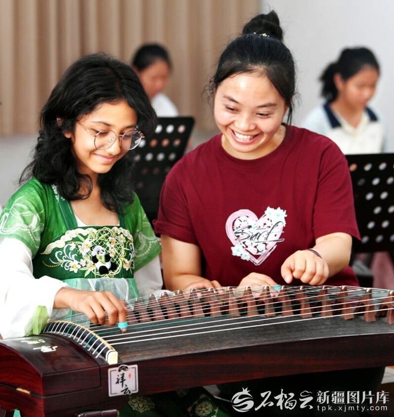 7月5日,各族小朋友在叶城县昆仑国学书院学习古筝。该院设置了国学经典、国学体验等课程,大力传承和弘扬中华优秀传统文化。石榴云/新疆日报记者 约提克尔·尼加提摄