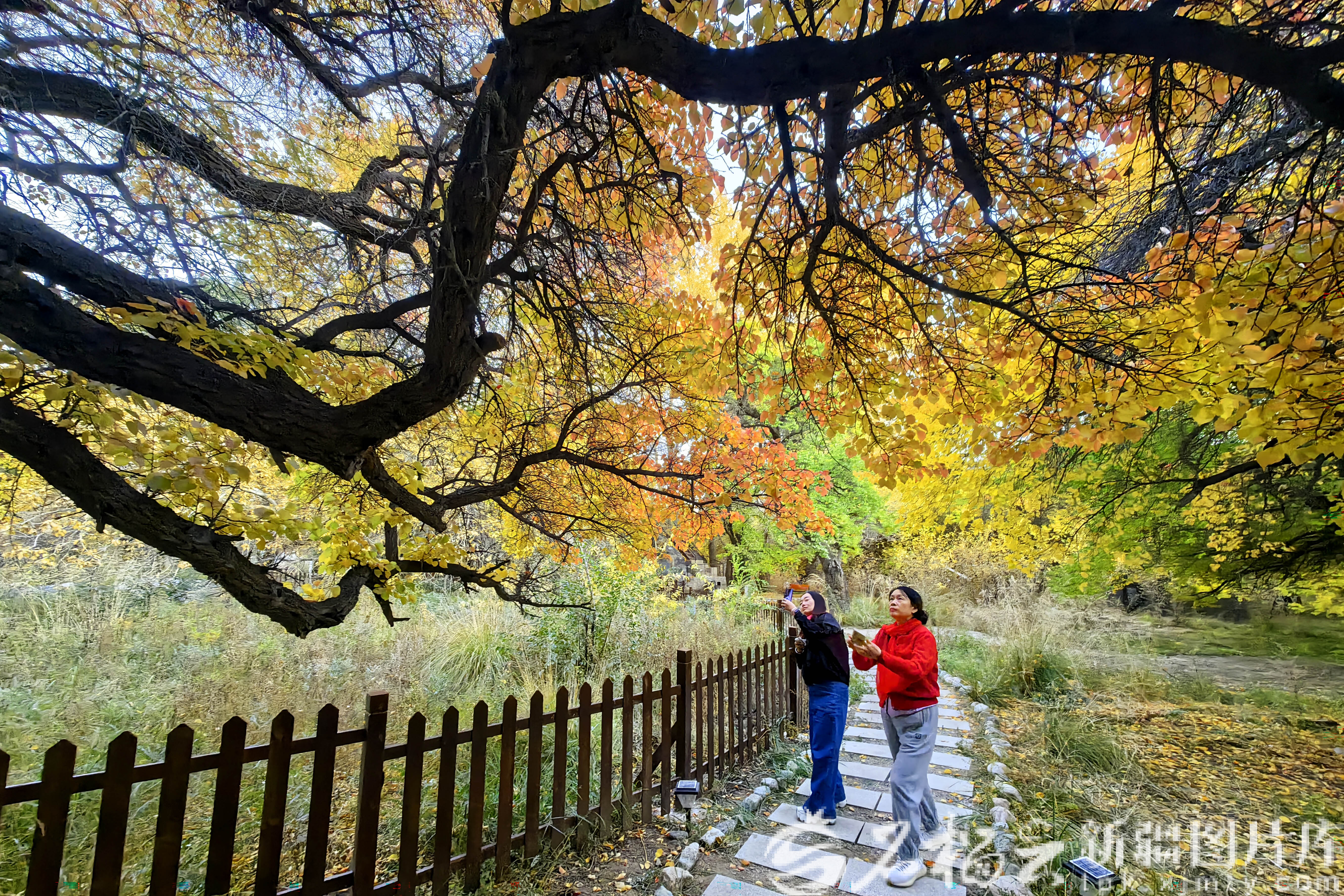 位于哈密市东北约100公里处的新疆生产建设兵团第十三师新星市八大石古村落遗址景区,迎来了一年中最美的时节。峡谷中黄叶纷飞、红叶似火,绿草如茵与斑斓林木交相辉映,宛如一幅天然油画,游客纷至沓来,寻觅心中的“世外桃源”。