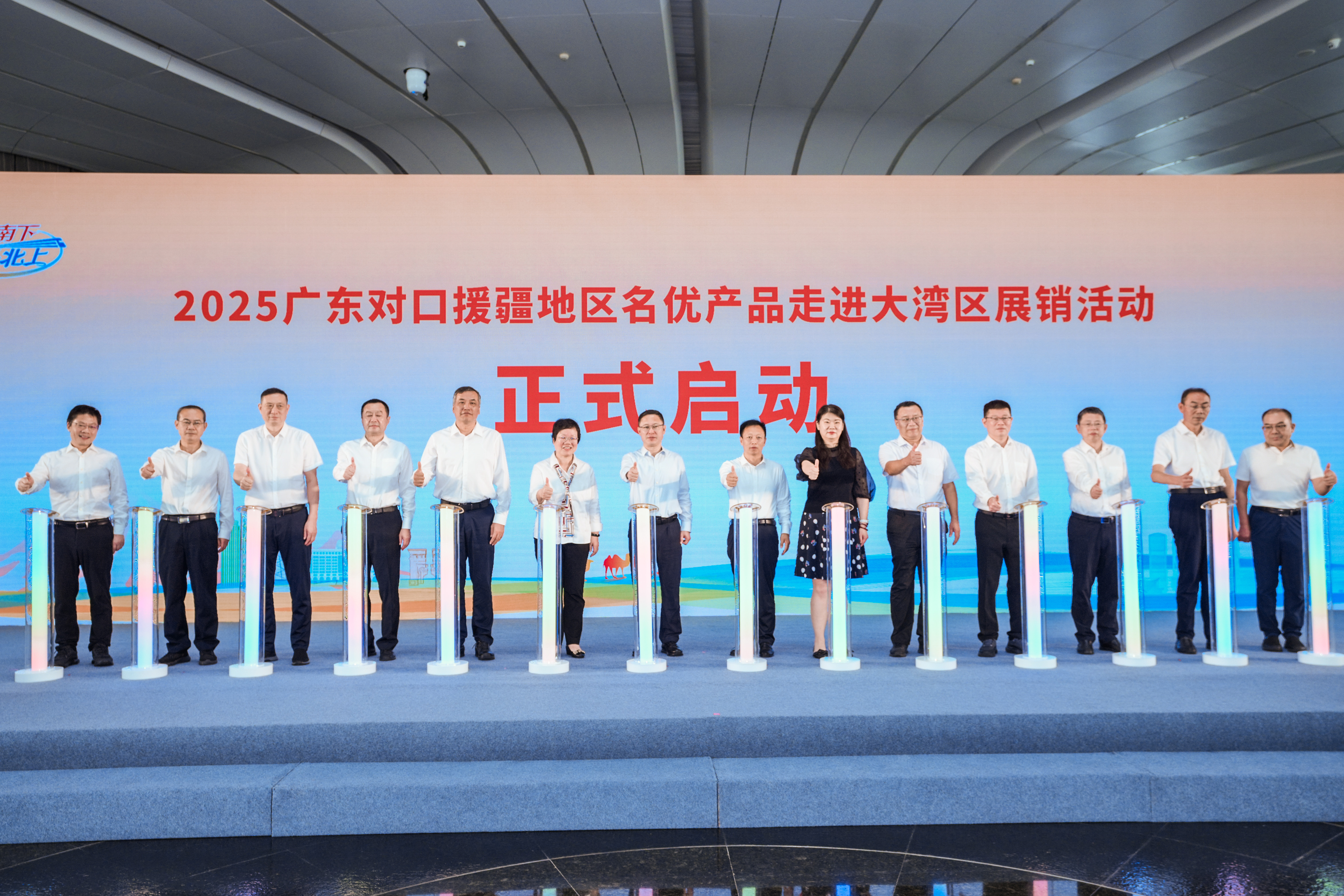 与会人员共同启动“疆品南下 粤品北上”2025广东对口援疆地区名优产品走进大湾区展销活动。