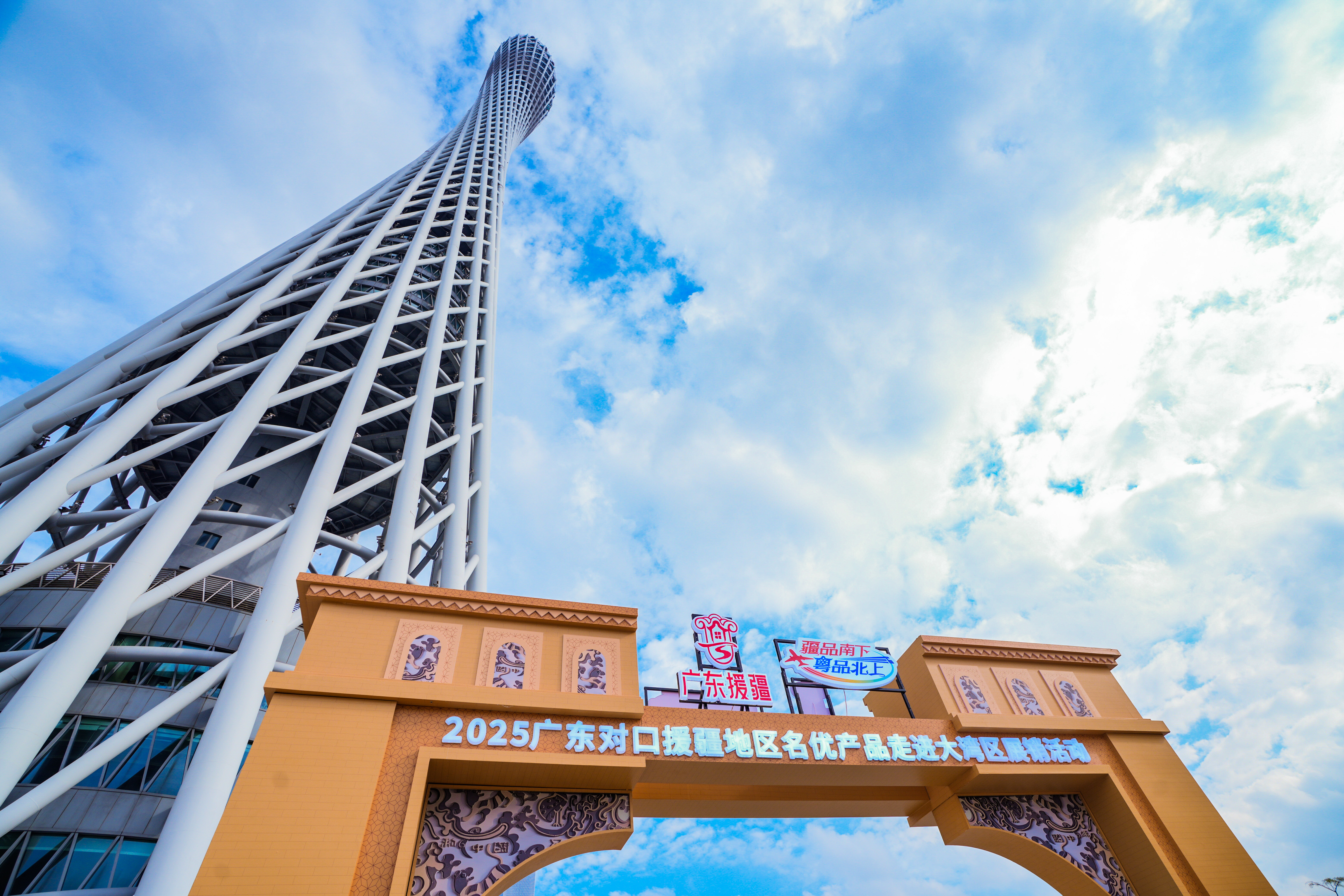 国庆、中秋双节氛围渐浓,一场疆味集市“空降”羊城!9月28日,“疆品南下 粤品北上”2025广东对口援疆地区名优产品走进大湾区展销活动在广州市广州塔广场启幕。