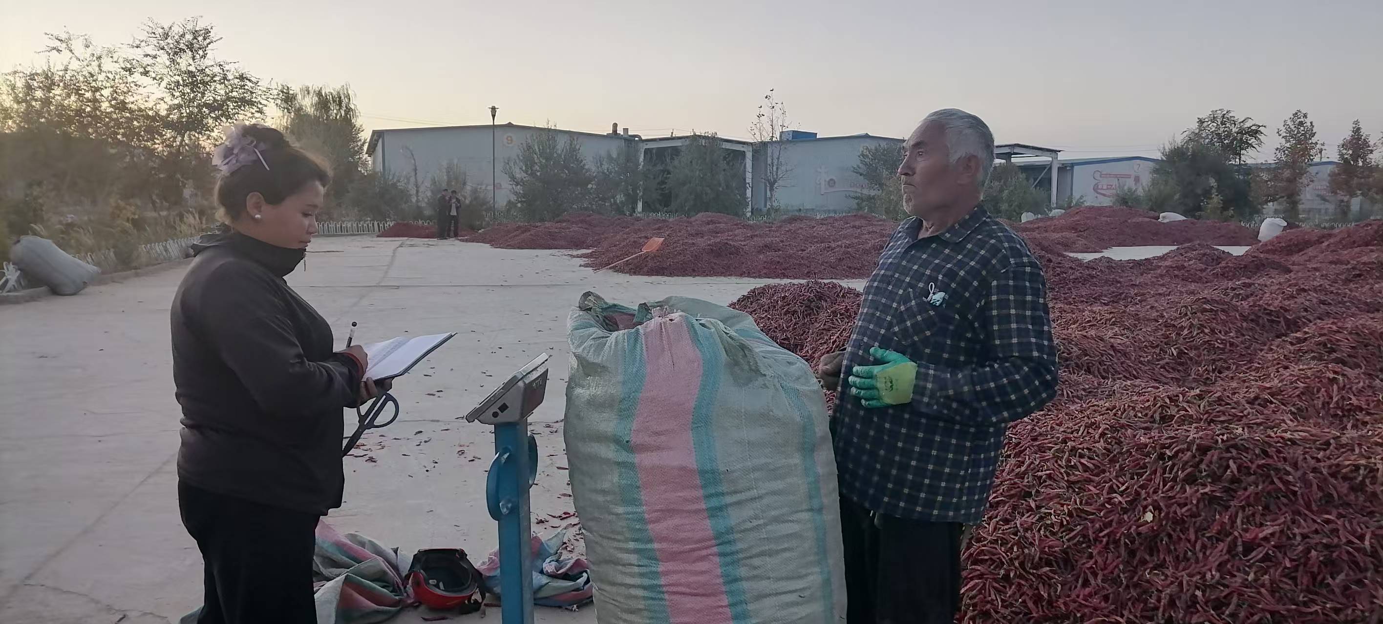 田间地头同样热闹,喀尔赛镇巴格其村村民麦麦提如孜·依斯玛伊力今年种植5.9亩8号辣椒,收获2419公斤,销售收入达2万余元,同时在晾晒场务工每天还能获得150元收入;在金源公司的加工车间,阿依古丽·买买提正在对辣椒进行分拣。像她一样的本地务工村民在旺季日均收入可达200多元,实现“家门口就业”。两家龙头企业已带动普恰克其镇等乡镇超4000人次季节性务工,让近四万亩辣椒种植户既能通过种植获利,又能依托产业链就业增收。