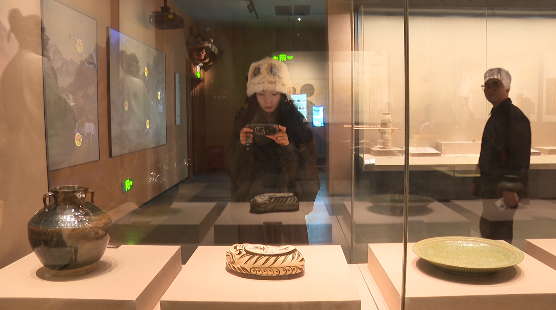 福建与昌吉艺术家正在丝绸之路北庭故城遗址博物馆观赏。罗佳妮 摄