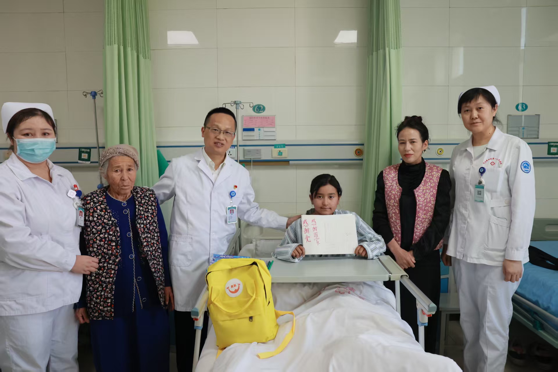 郑悦亮(左3)看望受益于浙江援疆“启明行动”的患儿。叶锡挺 摄
