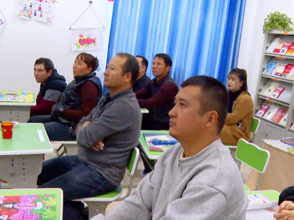 社区居民正在聚精会神地听老师讲课