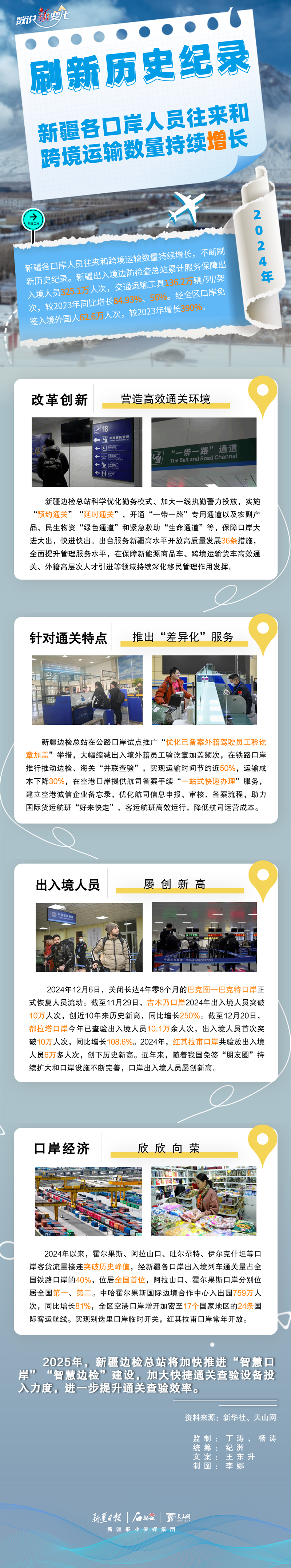 随着“一带一路”倡议及自贸试验区建设不断推进,新疆区位优势得到充分彰显,各口岸呈现欣欣向荣景象。2024年,新疆各口岸人员往来情况如何?跨境运输能力怎样?今天的《数说“新”变化》一起来看看。