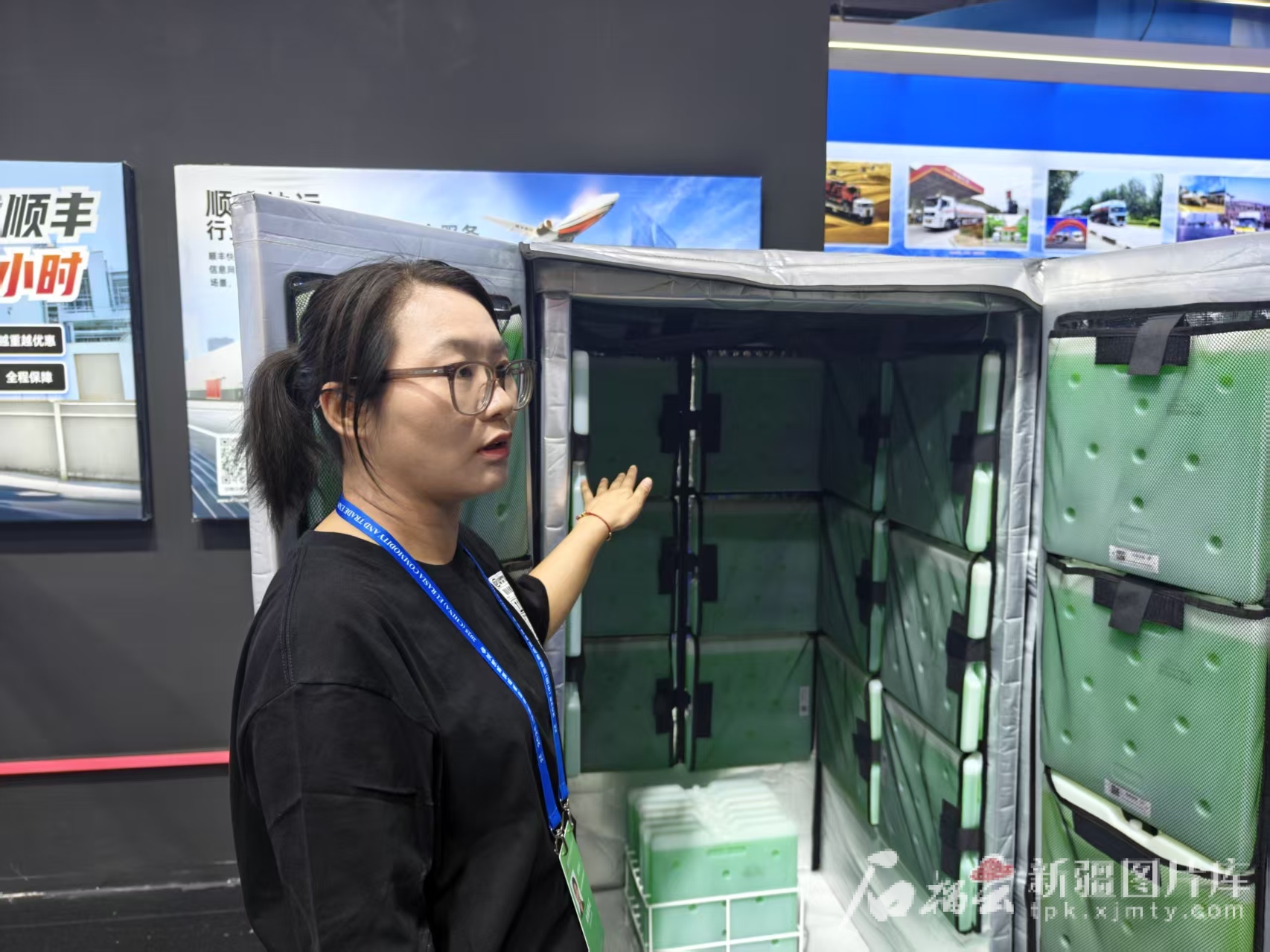 6月26日,新疆顺丰速运有限公司展厅工作人员在介绍冰笼。石榴云/新疆日报记者 范琼燕摄
