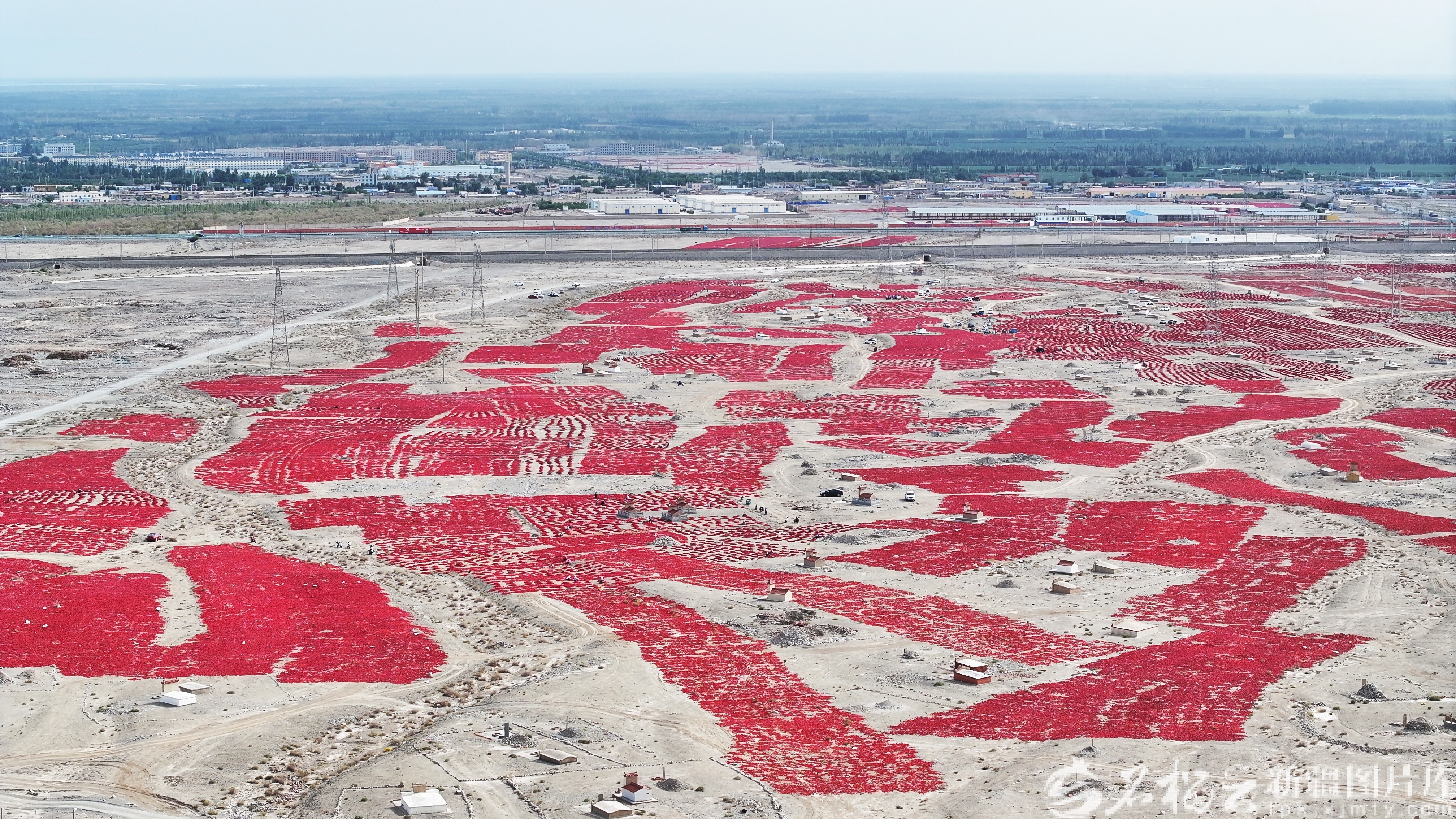 10月15日,航拍镜头下的和硕县辣椒晾晒场。 加亚巴图 摄