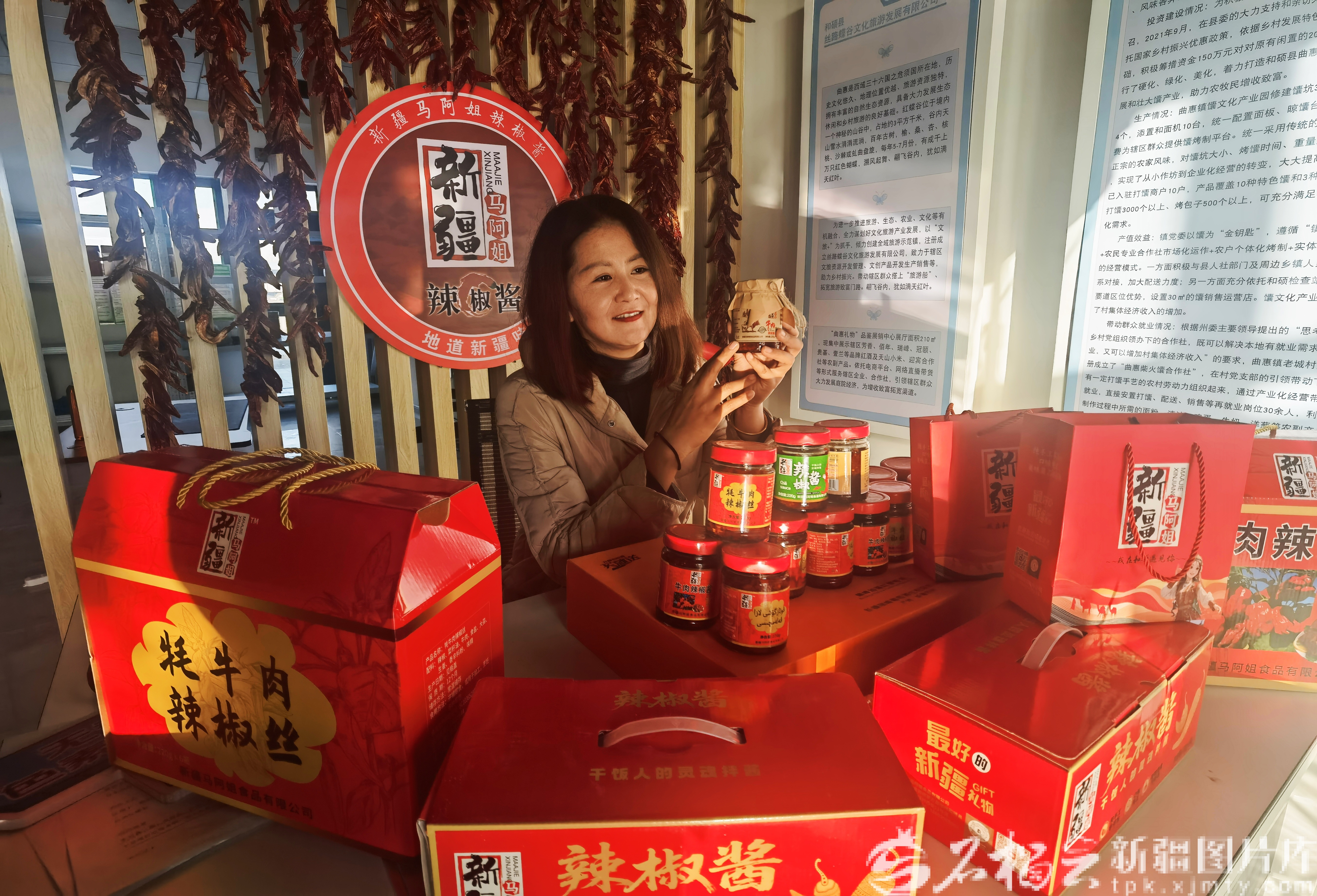 “这辣椒酱用的是咱地产辣椒,大家放心下单。”在和硕县曲惠镇老城村的电商直播间,新疆马阿姐食品有限公司负责人马卫玲正手持产品直播推介。去年,她依托当地辣椒产业,创办农副食品加工企业,开发的系列辣椒产品很快赢得市场青睐。