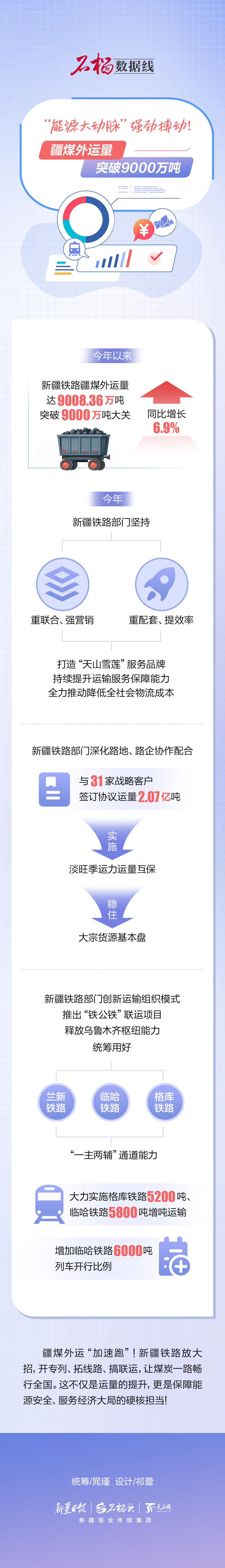 今年以来,新疆铁路疆煤外运量达9008.36万吨,突破9000万吨大关,同比增长6.9%。