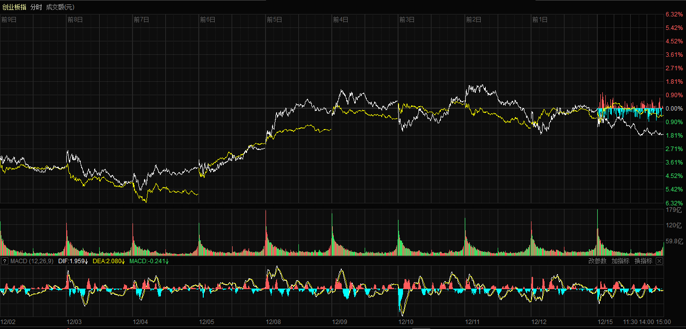 石榴云/新疆日报讯(记者 康颢严报道)12月15日,A股三大指数集体回调。截至收盘,沪指跌0.55%,报收3867.92点;深证成指跌1.10%,报收13112.09点;创业板指跌1.77%,报收3137.80点。沪深两市成交额17734亿元,较上一交易日缩量3188亿元。