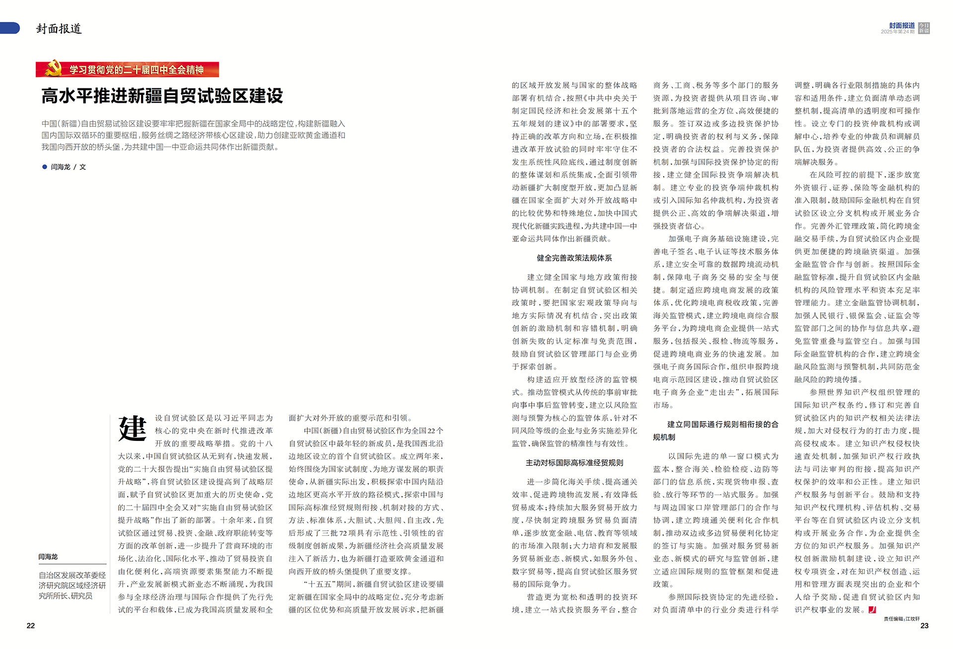 中国(新疆)自由贸易试验区作为全国22个自贸试验区中最年轻的新成员,是我国西北沿边地区设立的首个自贸试验区。成立两年来,始终围绕为国家试制度、为地方谋发展的职责使命,从新疆实际出发,积极探索中国内陆沿边地区更高水平开放的路径模式,探索中国与国际高标准经贸规则衔接、机制对接的方式、方法、标准体系,大胆试、大胆闯、自主改,先后形成了三批72项具有示范性、引领性的省级制度创新成果,为新疆经济社会高质量发展注入了新活力,也为新疆打造亚欧黄金通道和向西开放的桥头堡提供了重要支撑。