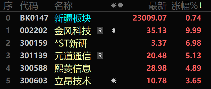 新疆板块指数近十日变化趋势(来源:东方财富)。