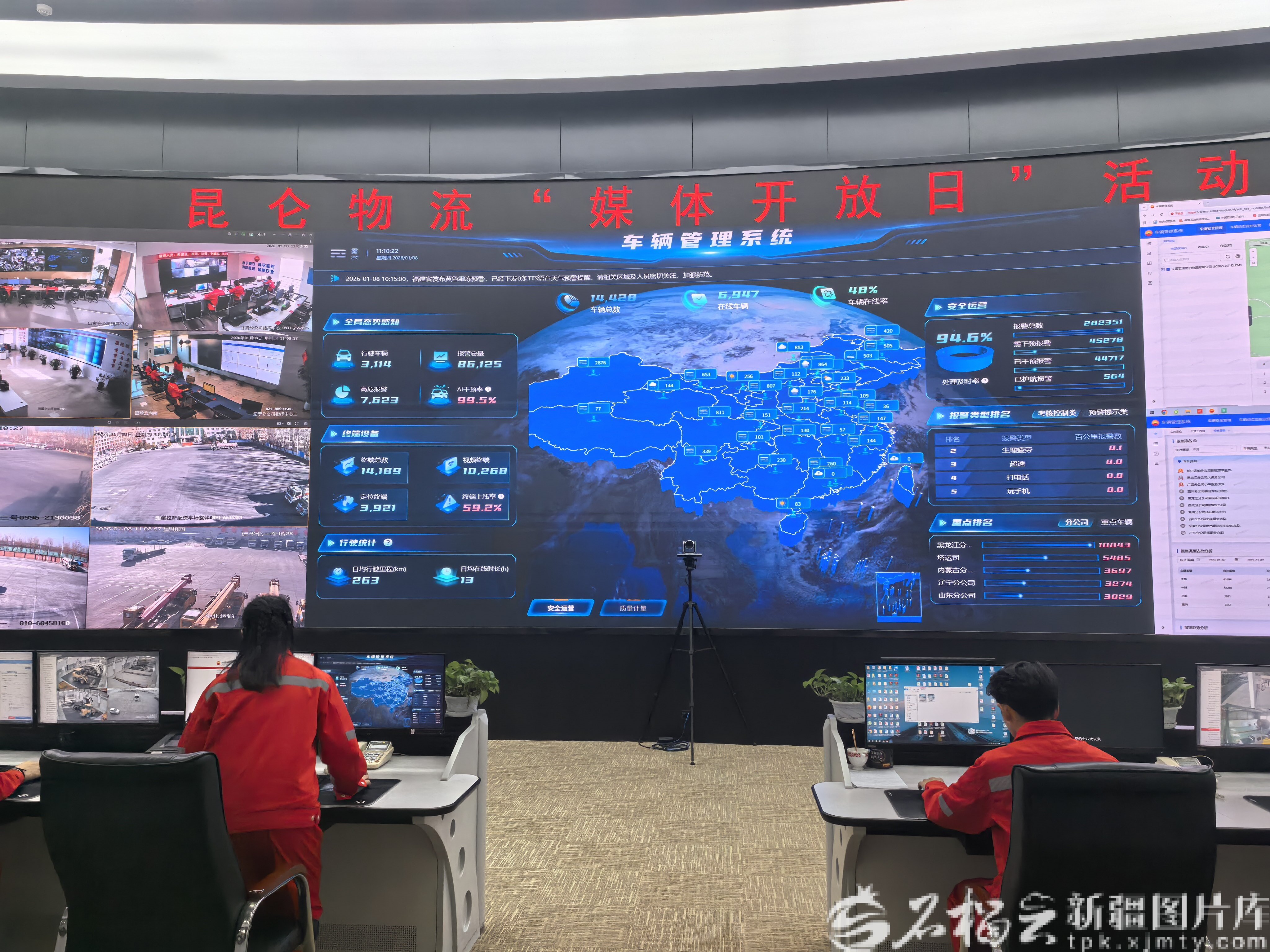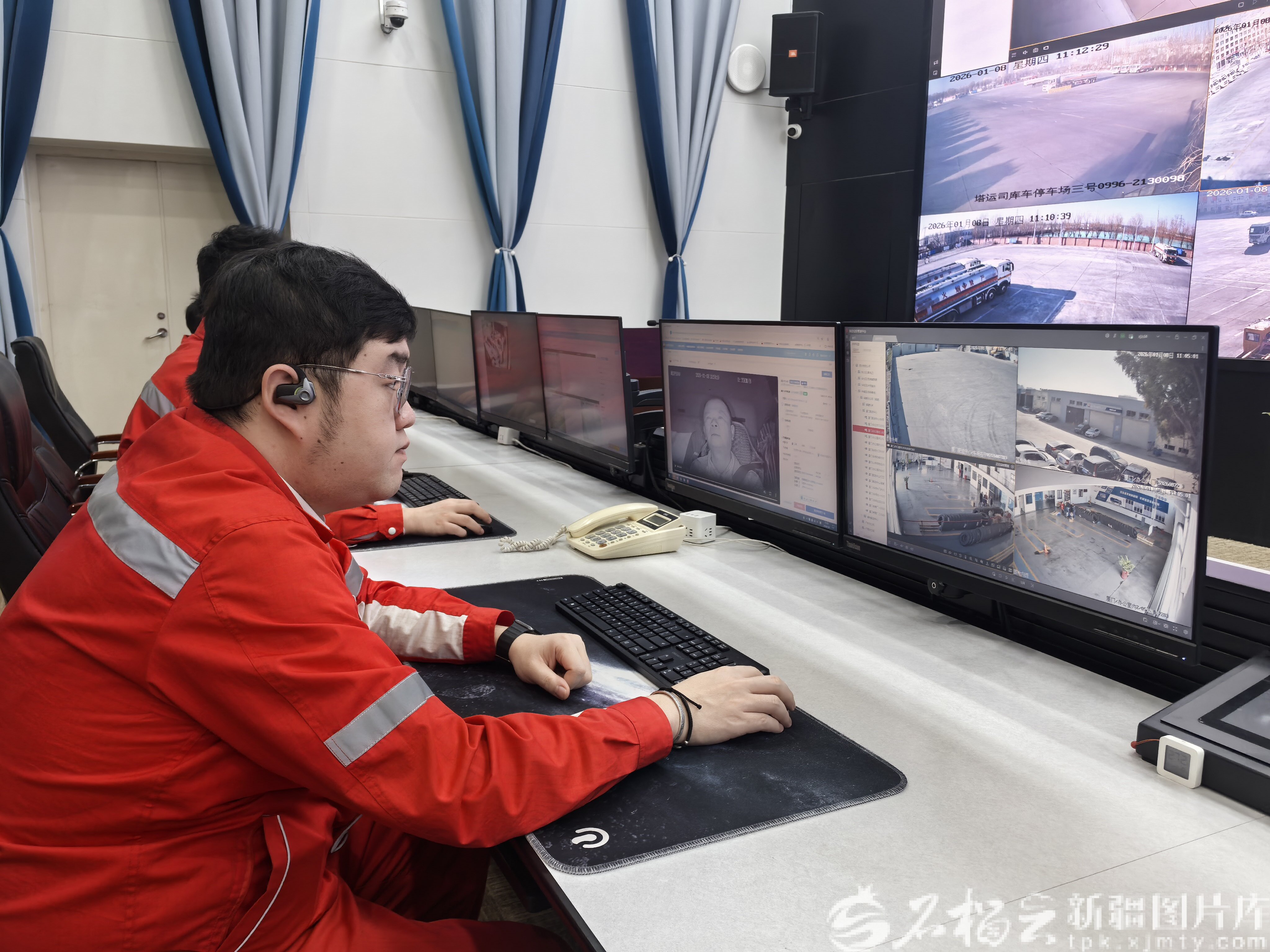 1月13日,在中国石油昆仑物流有限公司智能监控中心大厅,监控人员对运行车辆远程监控。石榴云/新疆日报记者 赵悦摄