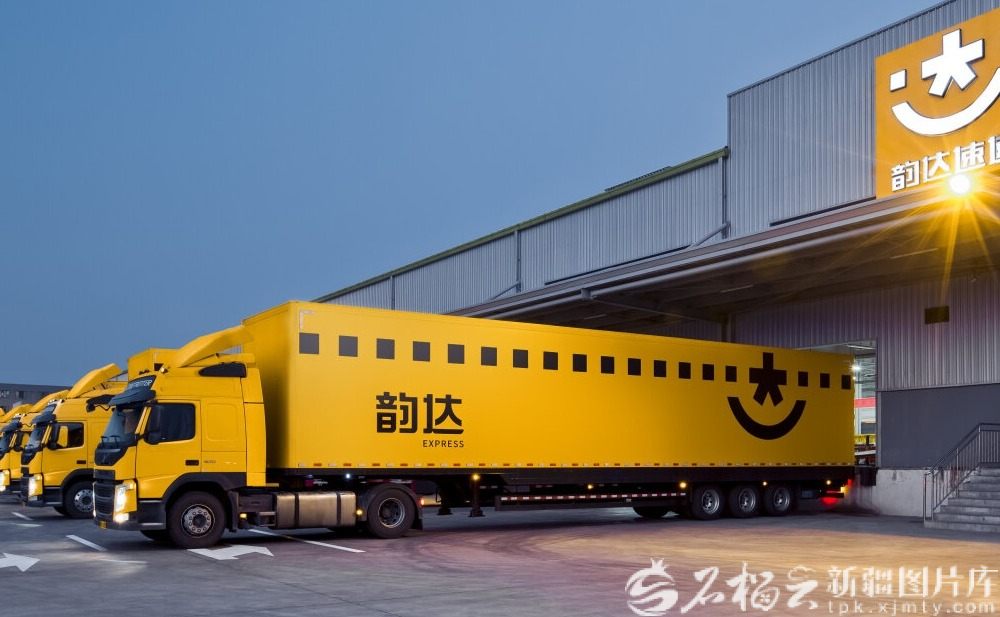 新疆韵达快递有限公司新疆转运中心卸车口车辆有序停靠卸快件。郭昌龙摄(资料图)