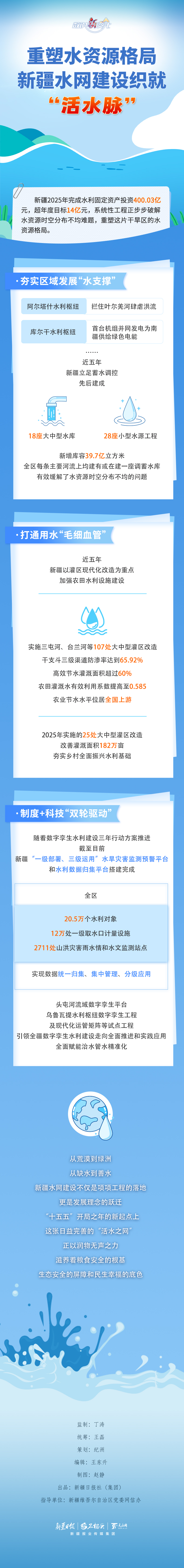 新疆2025年完成水利固定资产投资400.03亿元,超年度目标14亿元。近年来,新疆水利投资投在了哪些地方?对破解水资源时空分布不均有何助力?今天的《数说“新”变化》一起来看看。