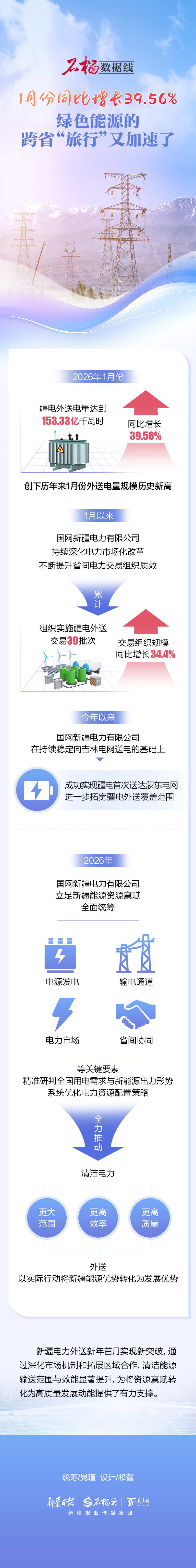 新疆电力外送新年首月实现新突破,通过深化市场机制和拓展区域合作,清洁能源输送范围与效能显著提升,为将资源禀赋转化为高质量发展动能提供了有力支撑。