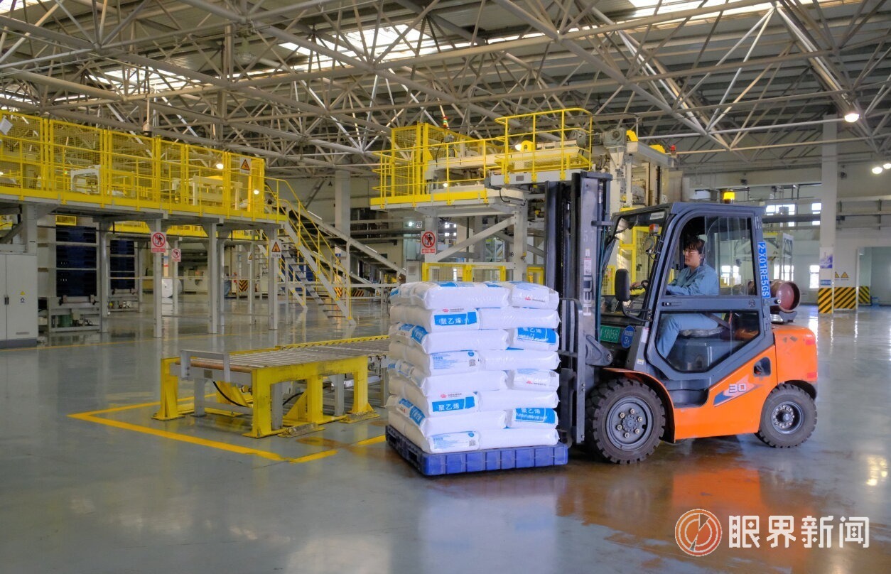 生产车间内,煤炭经过一系列复杂工艺,先转化为甲醇,再制成烯烃,最终通过聚合反应,变成了一颗颗米粒状的聚烯烃产品;包装车间内,一袋袋成品聚烯烃颗粒在全自动重膜包装机的操作下,整齐有序地完成封装、检验、出库,即将发往全国各地。