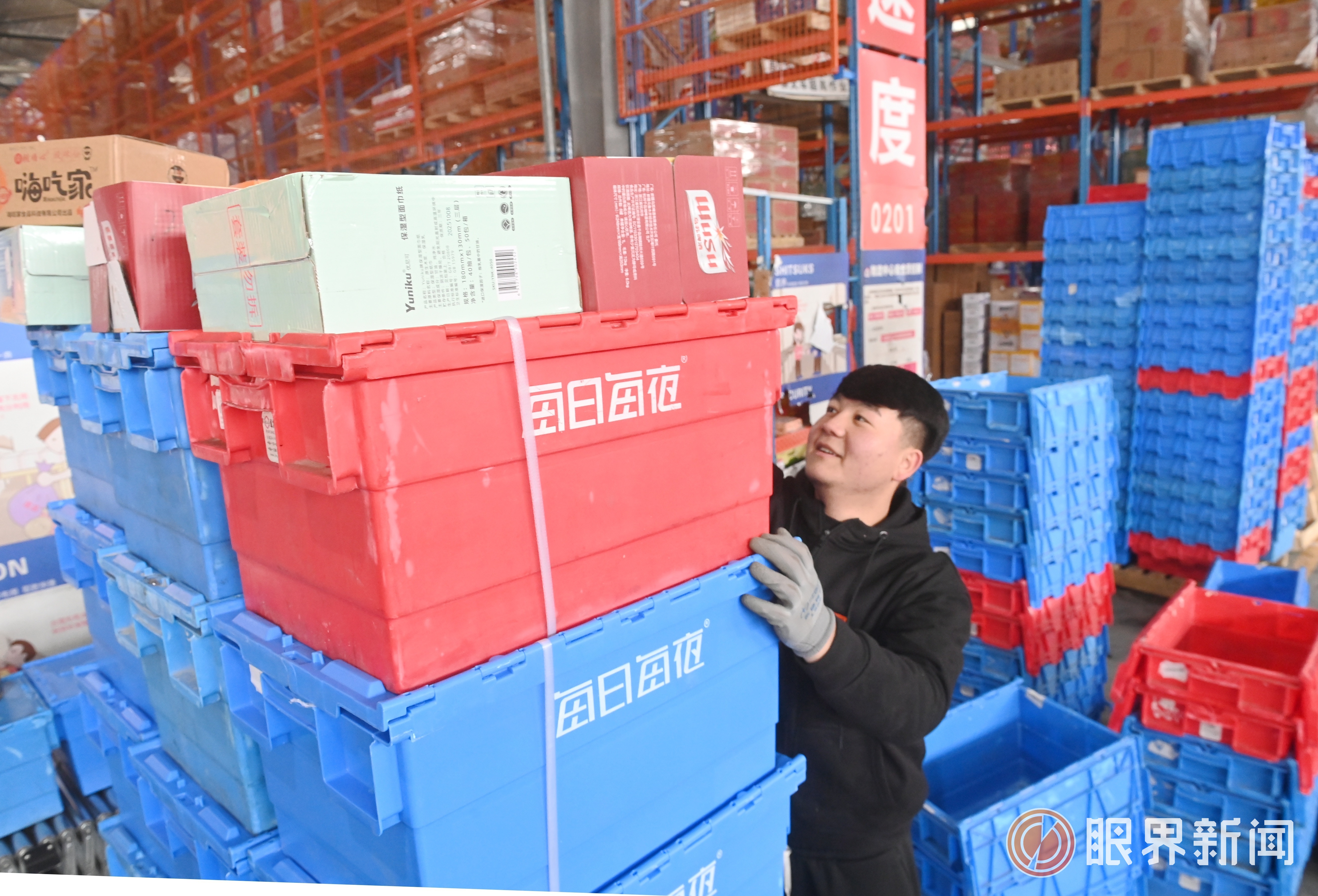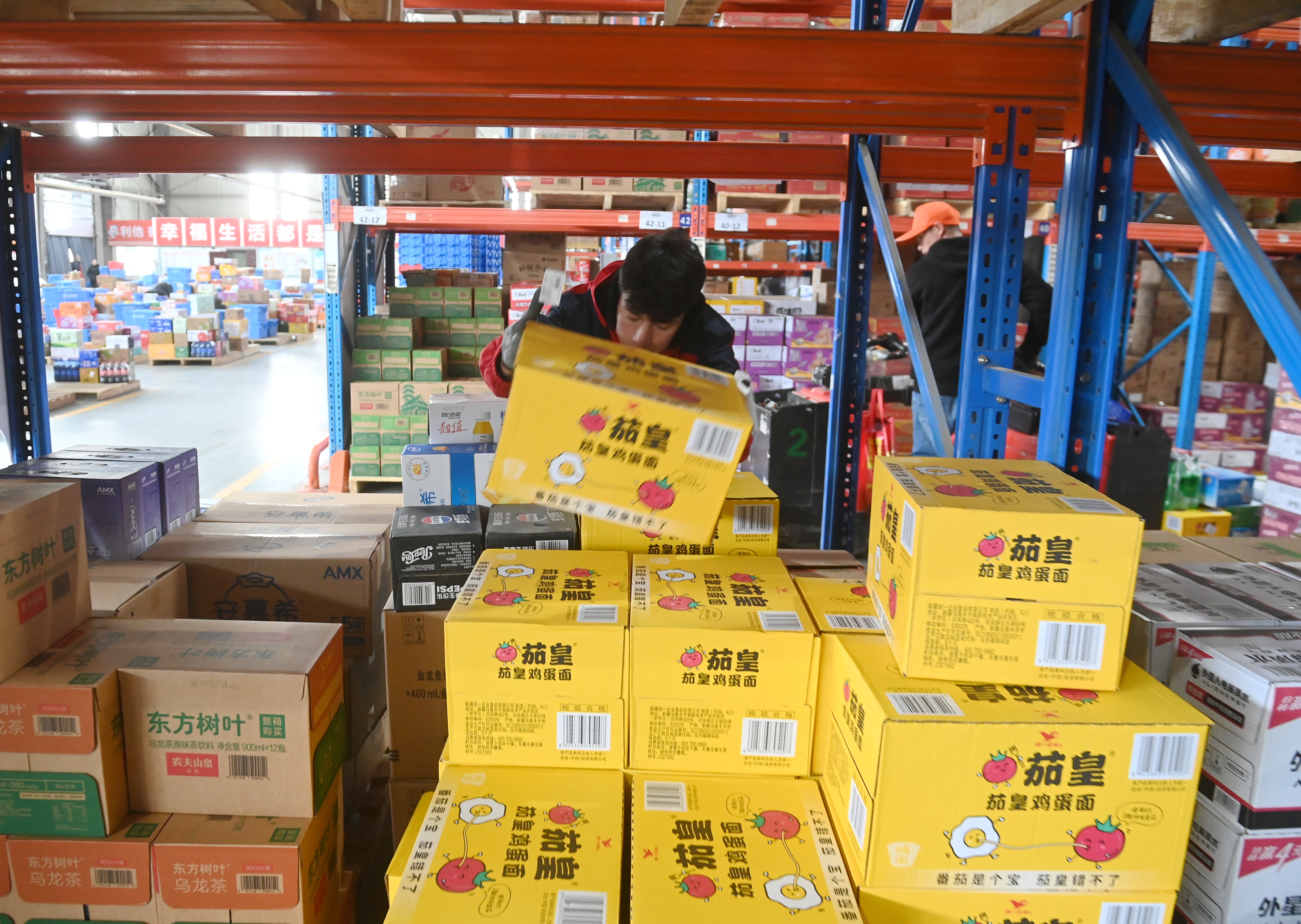 2月28日,每日每夜总部基地配送中心内,工作人员有序分拣、配送,保障门店物资供应。记者陈岩摄