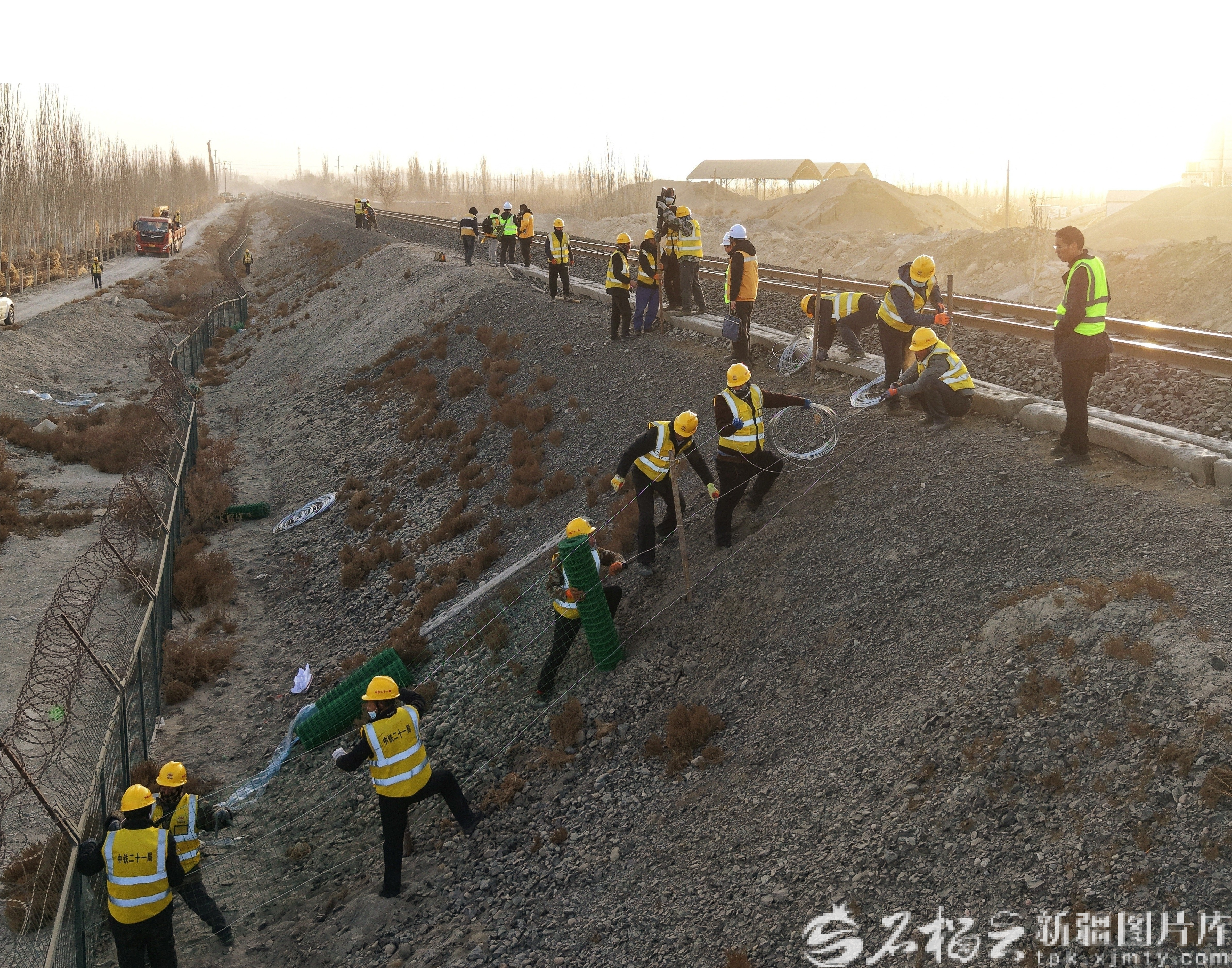 3月1日,南疆铁路阿克苏至巴楚段扩能改造工程建设现场。程莎莎摄