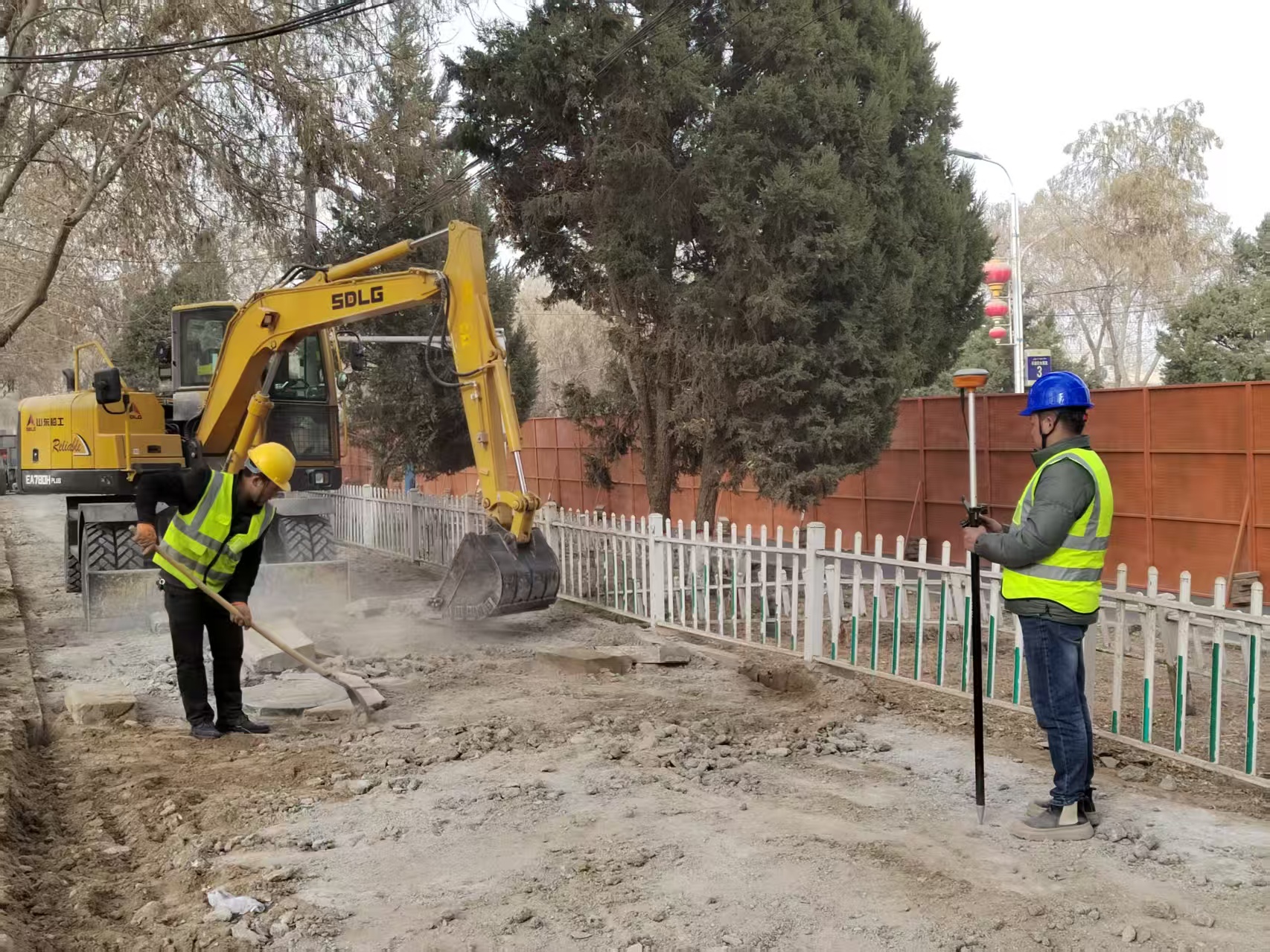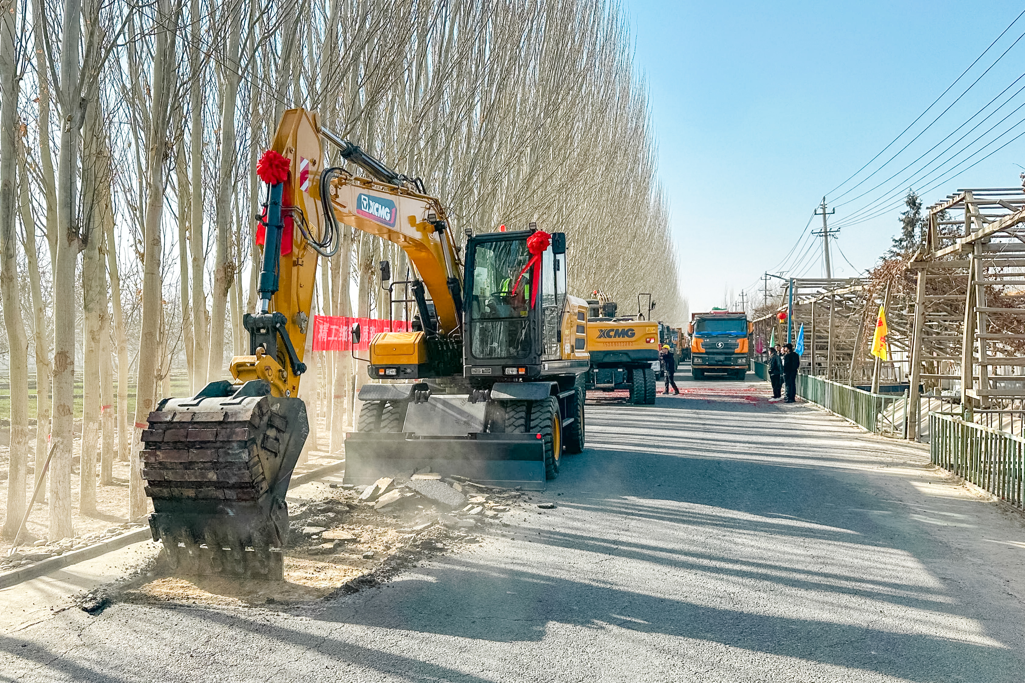 2月26日,策勒县道路提升改造工程现场。艾散江 摄