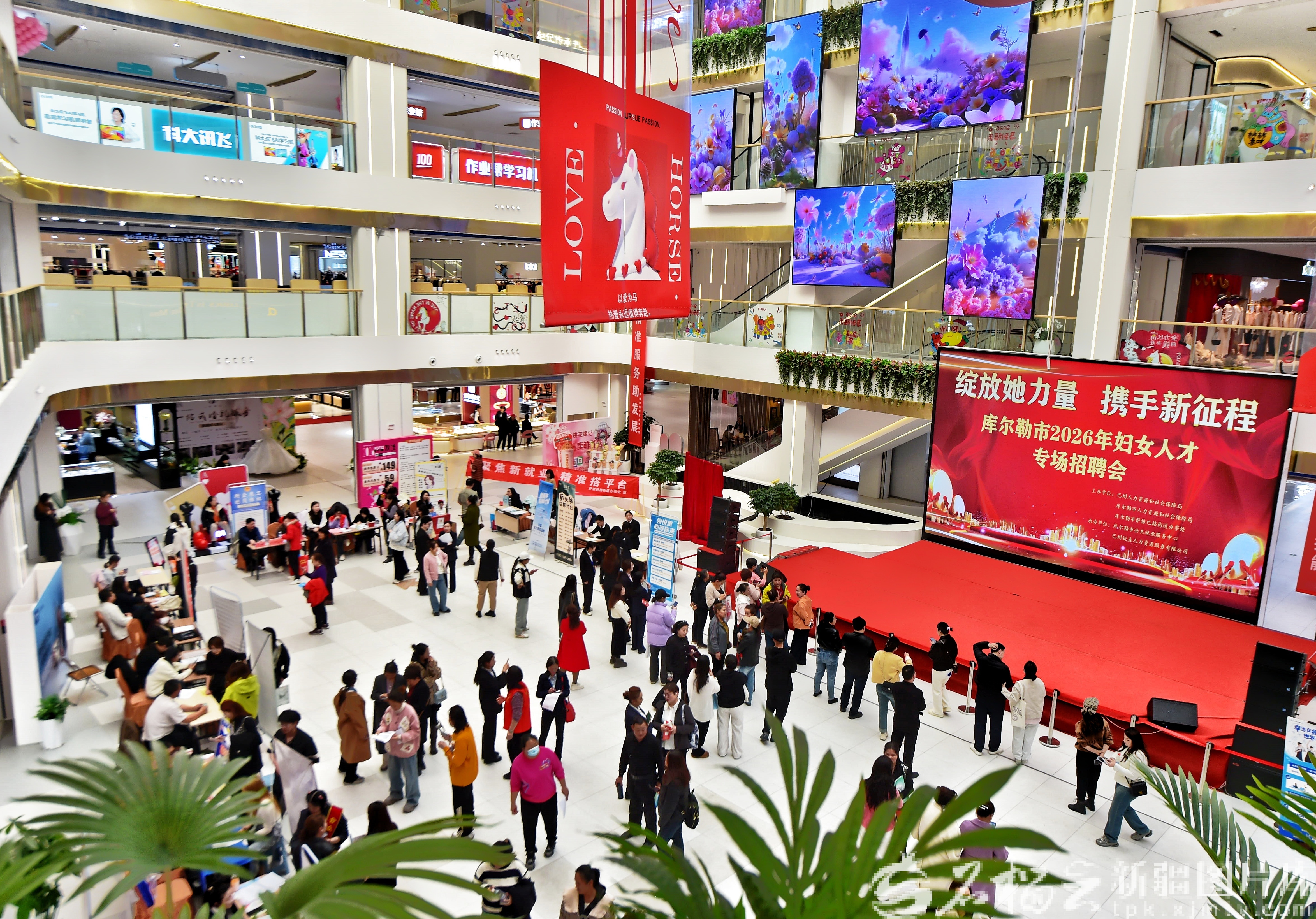 石榴云/新疆日报讯(记者 王立华摄影报道)3月10日下午,库尔勒市领先・领悦里广场人头攒动。由巴音郭楞蒙古自治州人力资源和社会保障局、库尔勒市人力资源和社会保障局联合主办的库尔勒市2026年妇女人才专场招聘会在此举行。