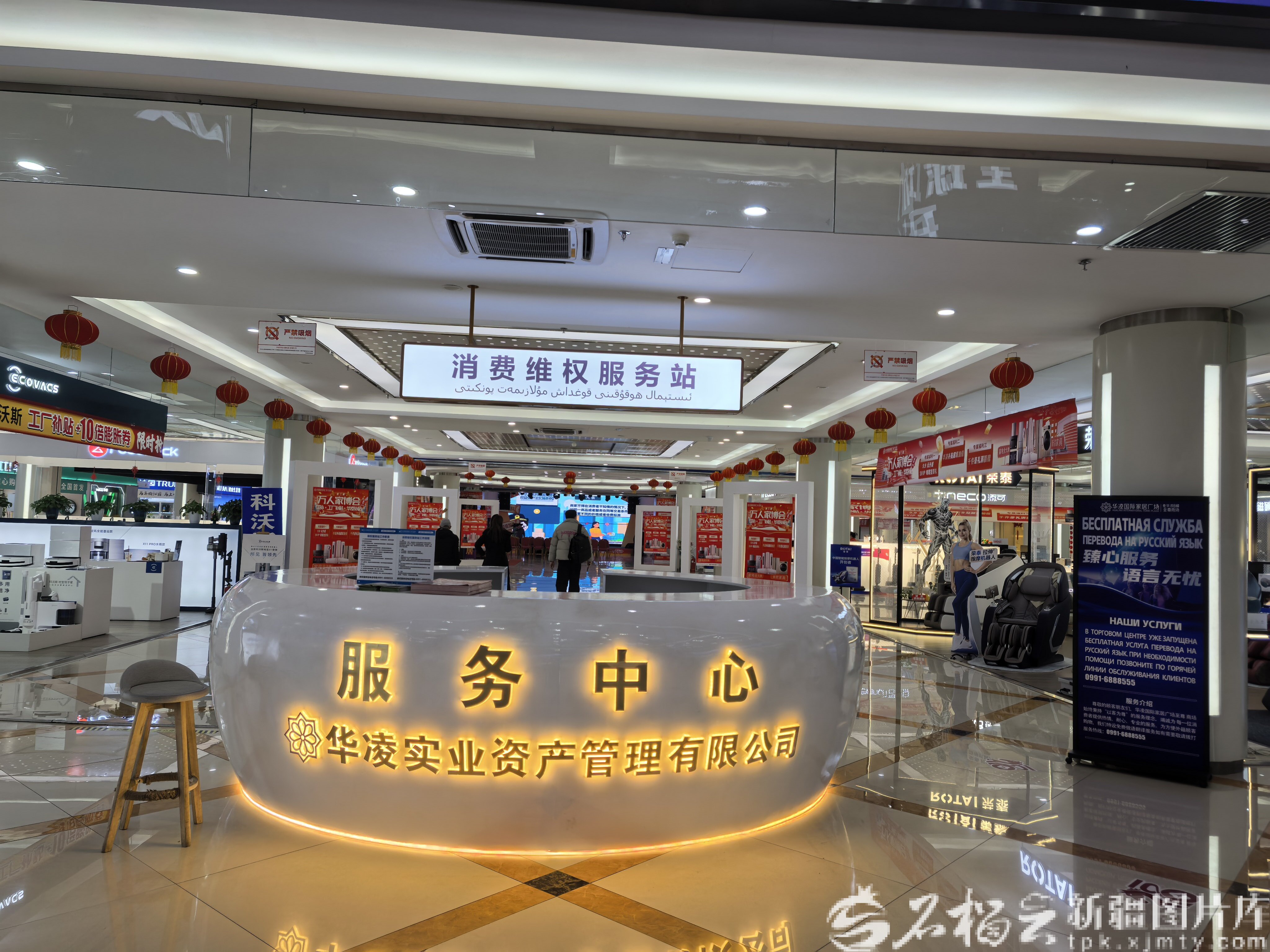 在乌鲁木齐市华凌综合市场B楼中心大厅,消费维权服务站设在醒目位置。石榴云/新疆日报记者 索蓉芝摄