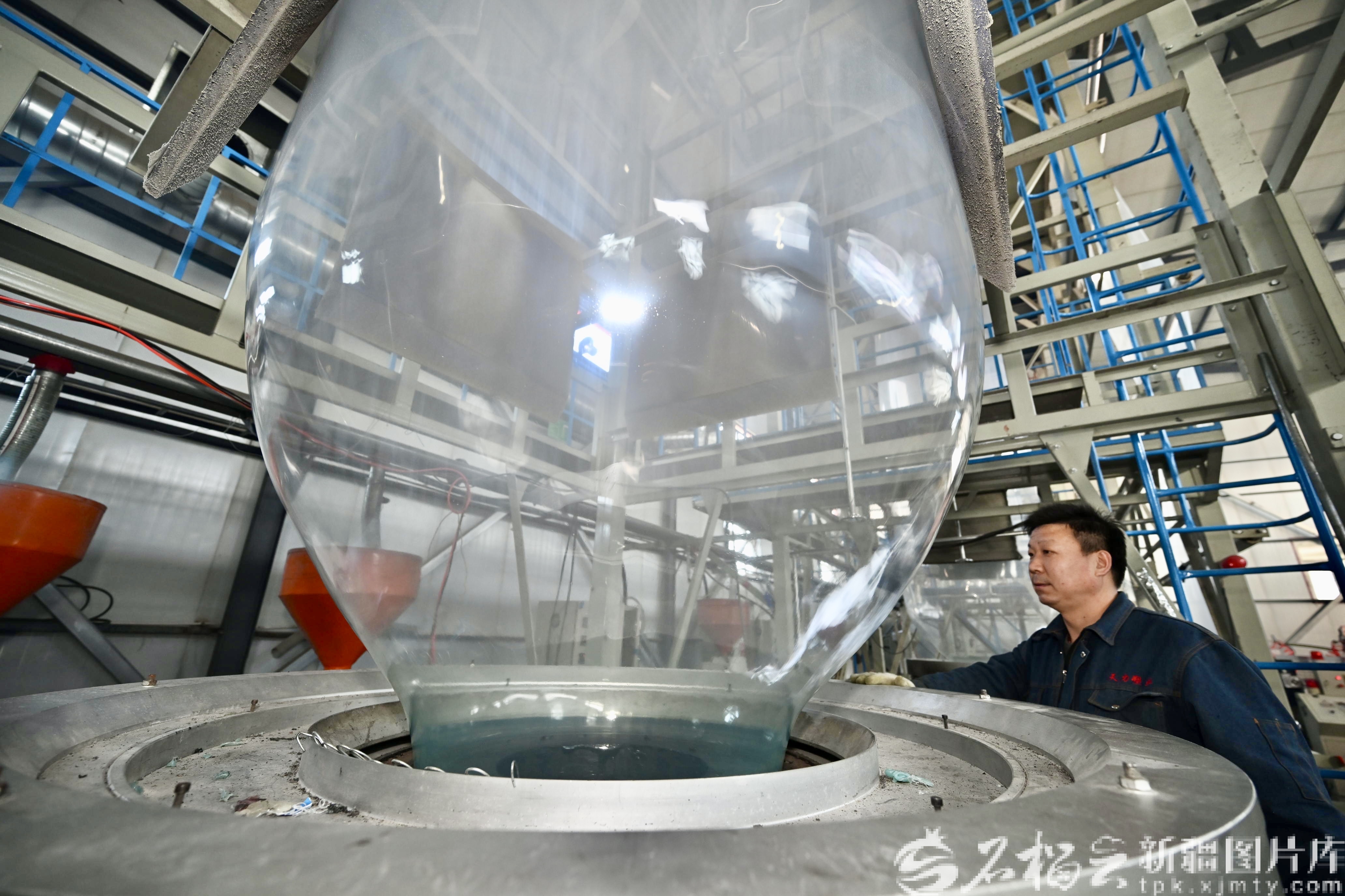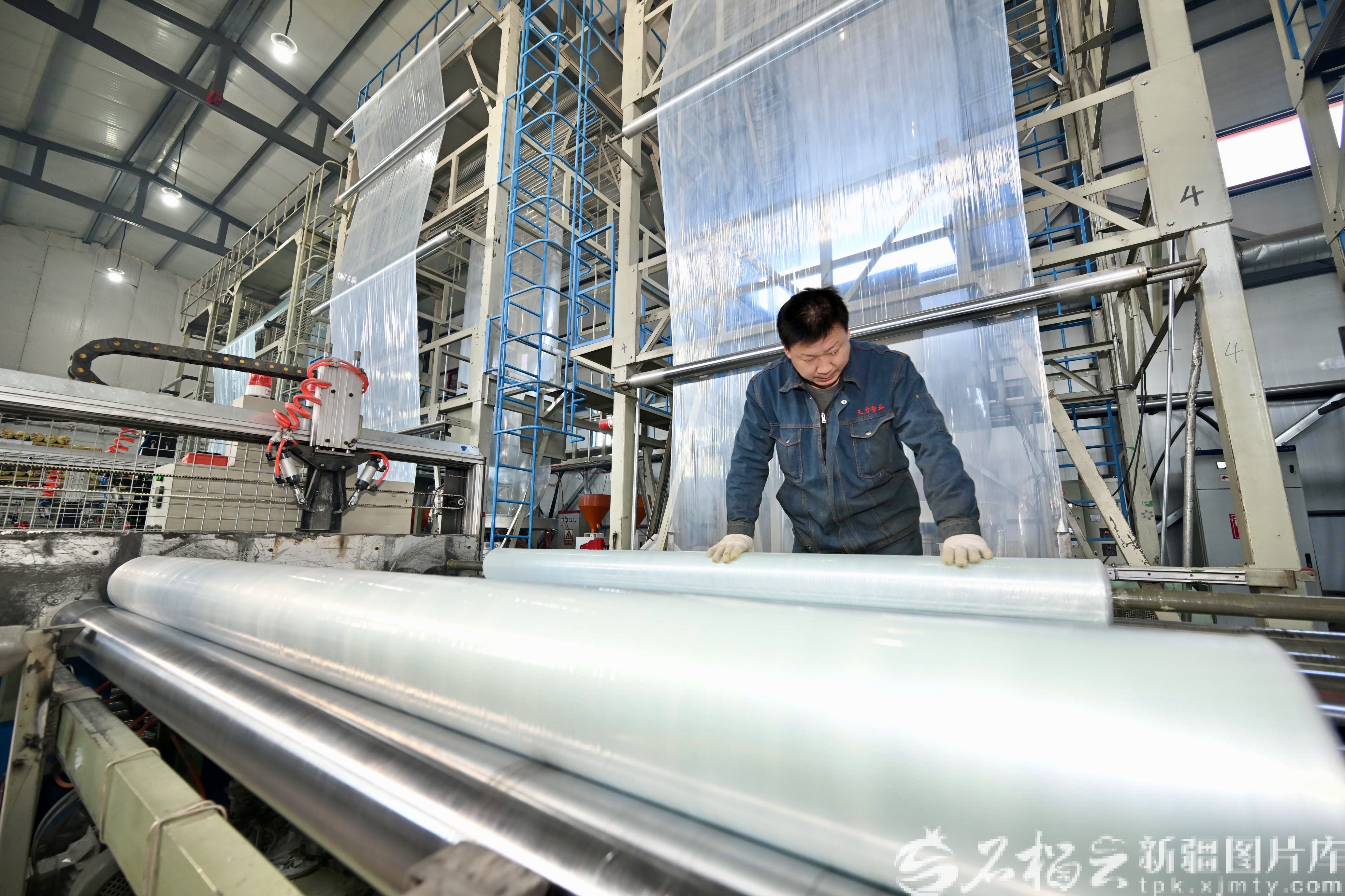 3月15日,昌吉市天力塑料厂生产车间,工人在地膜生产线上忙碌。