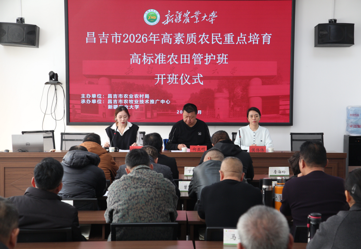 为切实提升昌吉市高标准农田管护从业人员专业能力,培育知农爱农、懂技术善经营的高素质农民队伍,助力乡村振兴和农业现代化发展。近日,由昌吉市农业农村局主办、新疆农业大学承办的昌吉市2026年高素质农民培育项目高标准农田管护班在新疆农业大学开班,来自昌吉市各地的45名学员齐聚校园,开启系统化、专业化的培训学习之旅。