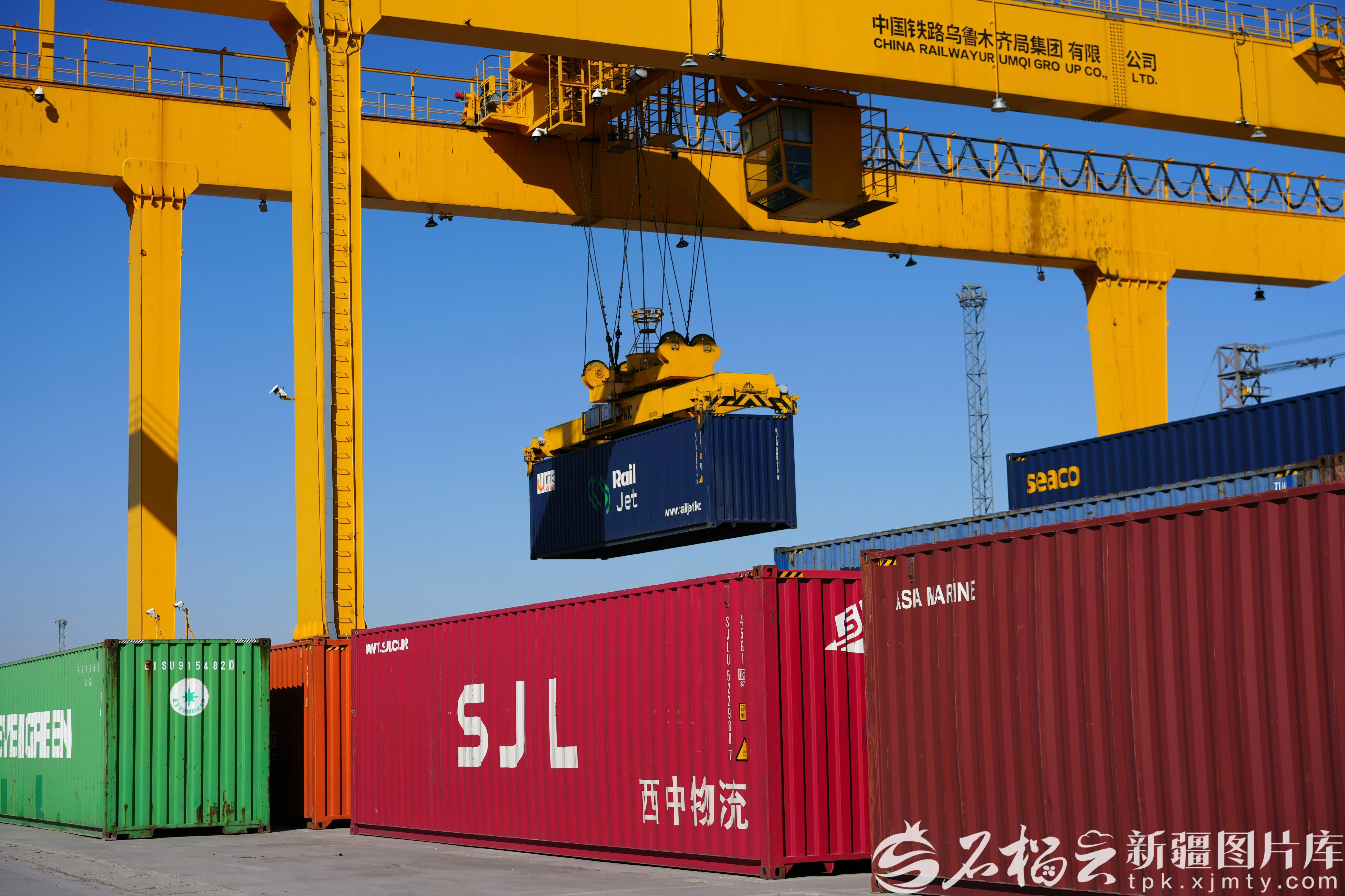 在阿拉山口铁路综合查验场,龙门吊巨臂日夜挥舞,一列列满载电子产品、日用百货的中欧班列完成换装、验放后,鸣笛西行。