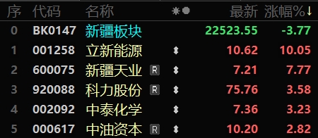 3月23日新疆板块股价涨幅排名(来源:东方财富)。