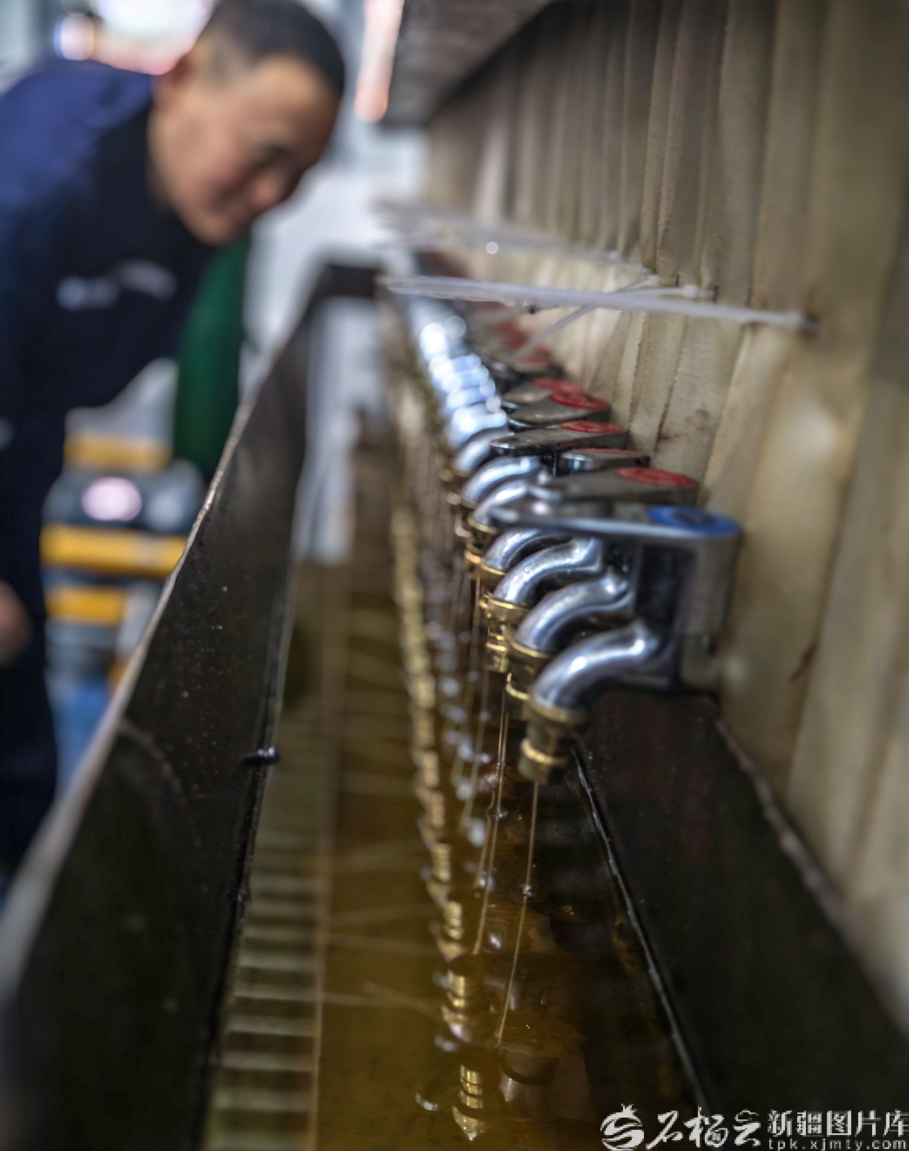 3月26日,新疆青耕国际商贸有限公司生产车间内,工人正在查看出油情况。