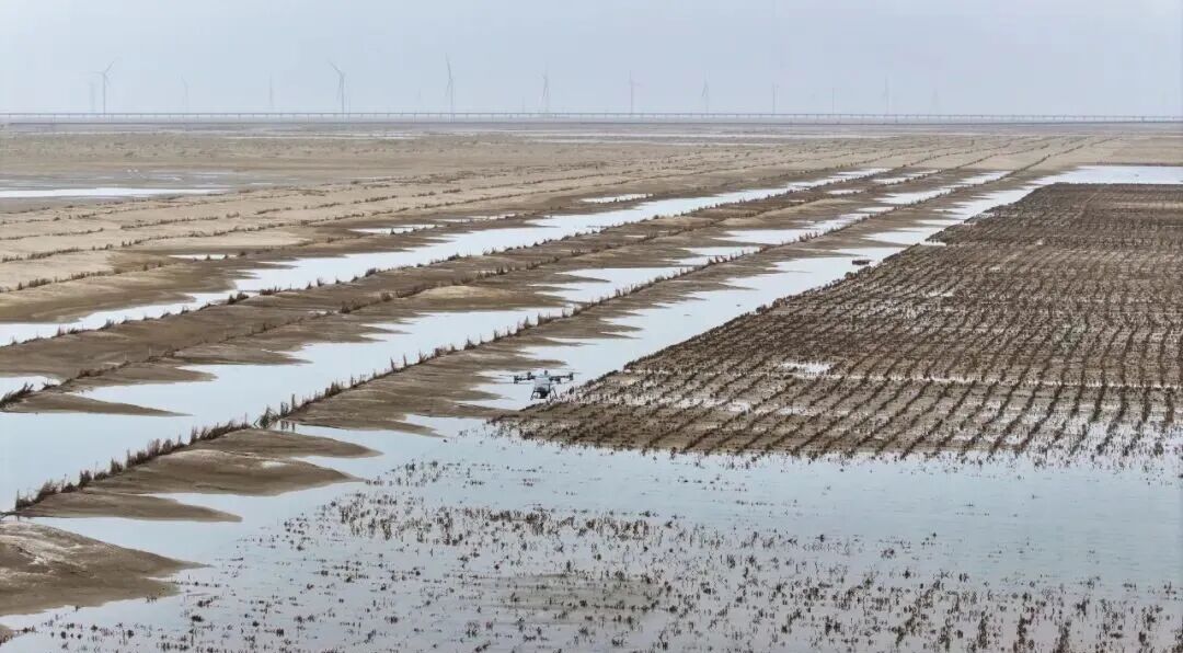 此次春季无人机飞播,是引洪灌溉生态修复链条的关键一环。前期引洪输水让沙地留存充足水分、改善土壤墒情,为种子萌发创造有利条件,由此形成“引洪输水—无人机飞播—自然萌发”的完整生态修复闭环。相较传统治沙模式,该新模式成本降幅超60%,实现生态效益与经济效益双向提升。