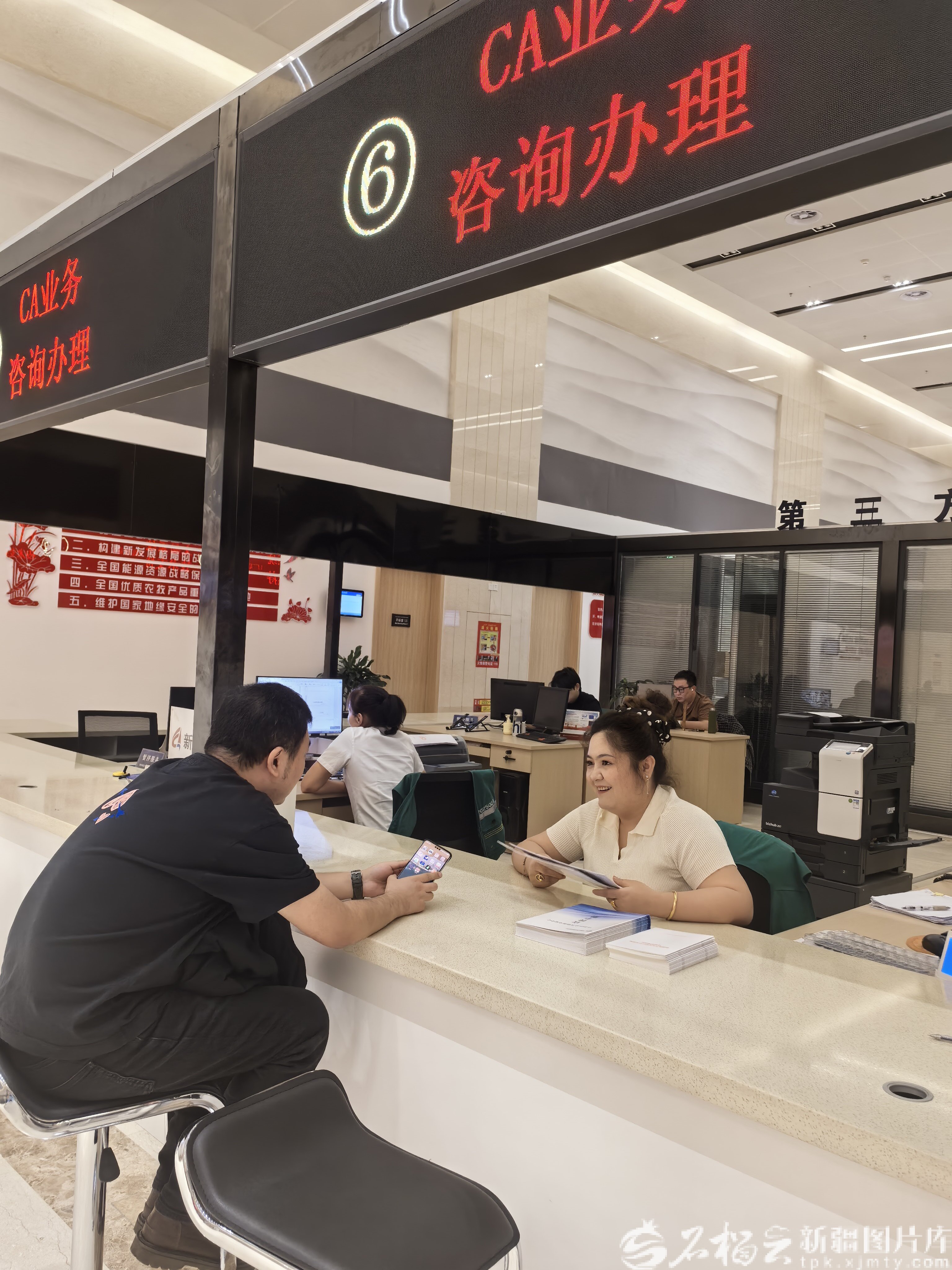 自治区公共资源交易中心服务大厅,工作人员在给办事人员介绍相关情况(资料图片)。石榴云/新疆日报记者 赵悦摄