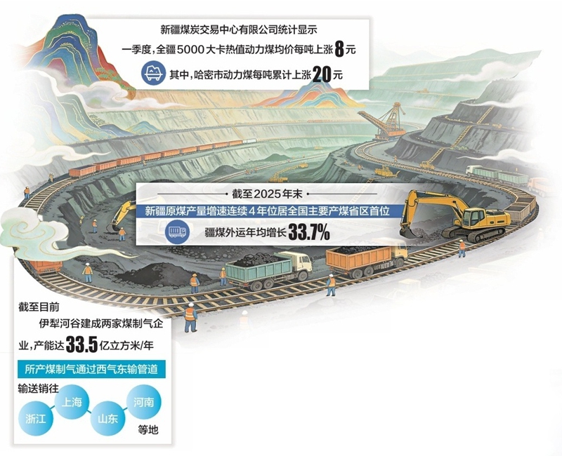 截至2025年末,新疆原煤产量增速连续4年居全国主要产煤省区首位,疆煤外运年均增长33.7%。为推动疆煤外运扩能增效,新疆正强化由兰新、临哈、格库铁路构成的“一主两翼”铁路运输体系建设。目前,格库铁路扩能改造工程、将淖铁路增建二线工程正加快建设,临河至哈密铁路扩能改造等重点疆煤外运项目已纳入国家“十五五”规划纲要。