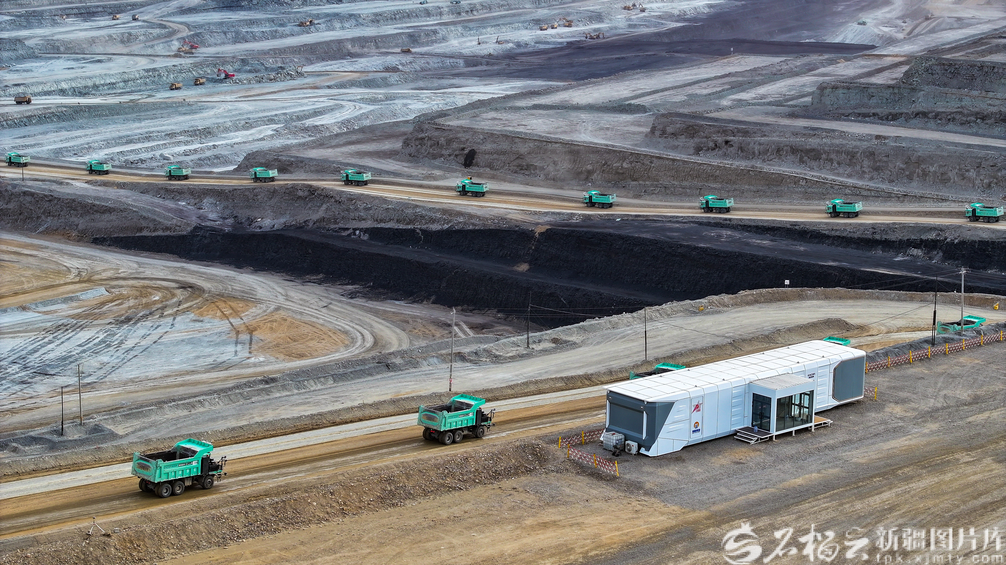 3月31日,一辆辆无人驾驶矿卡奔驰在白石湖露天煤矿运输。伊吾广汇矿业有限公司供图