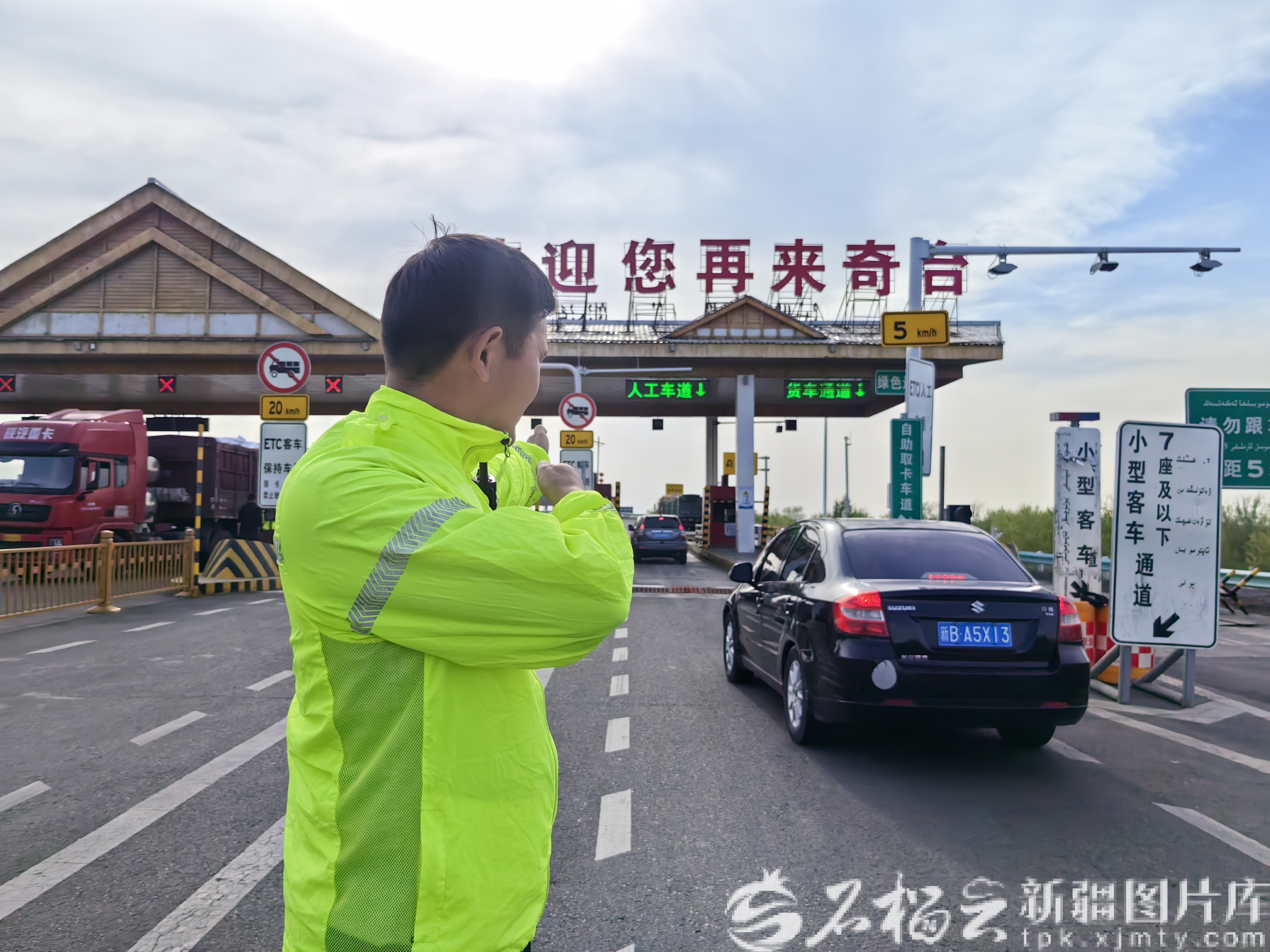 清明假期,新疆交投工作人员在引导车辆经行收费站。图/新疆交投提供