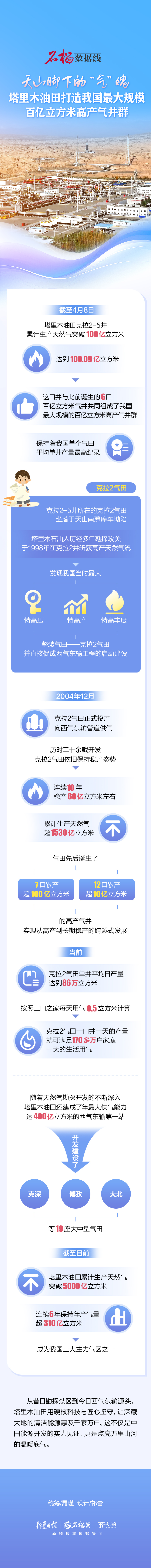 截至4月8日,塔里木油田克拉2-5井累计生产天然气突破100亿立方米,达到100.09亿立方米。