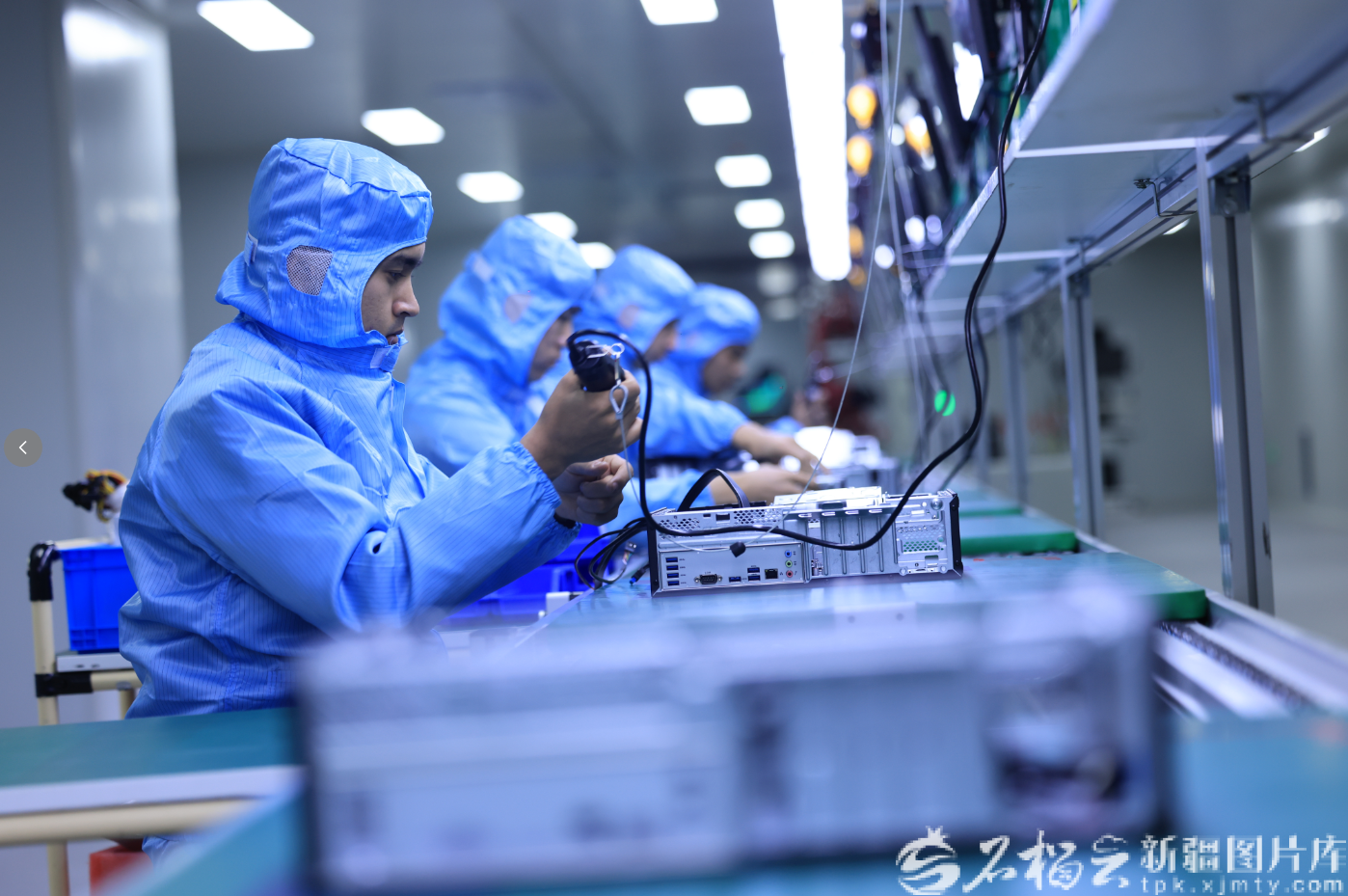 2025年11月10日,中国(新疆)自由贸易试验区喀什片区内一家科技公司的生产车间里,员工在组装电脑。陈文军摄