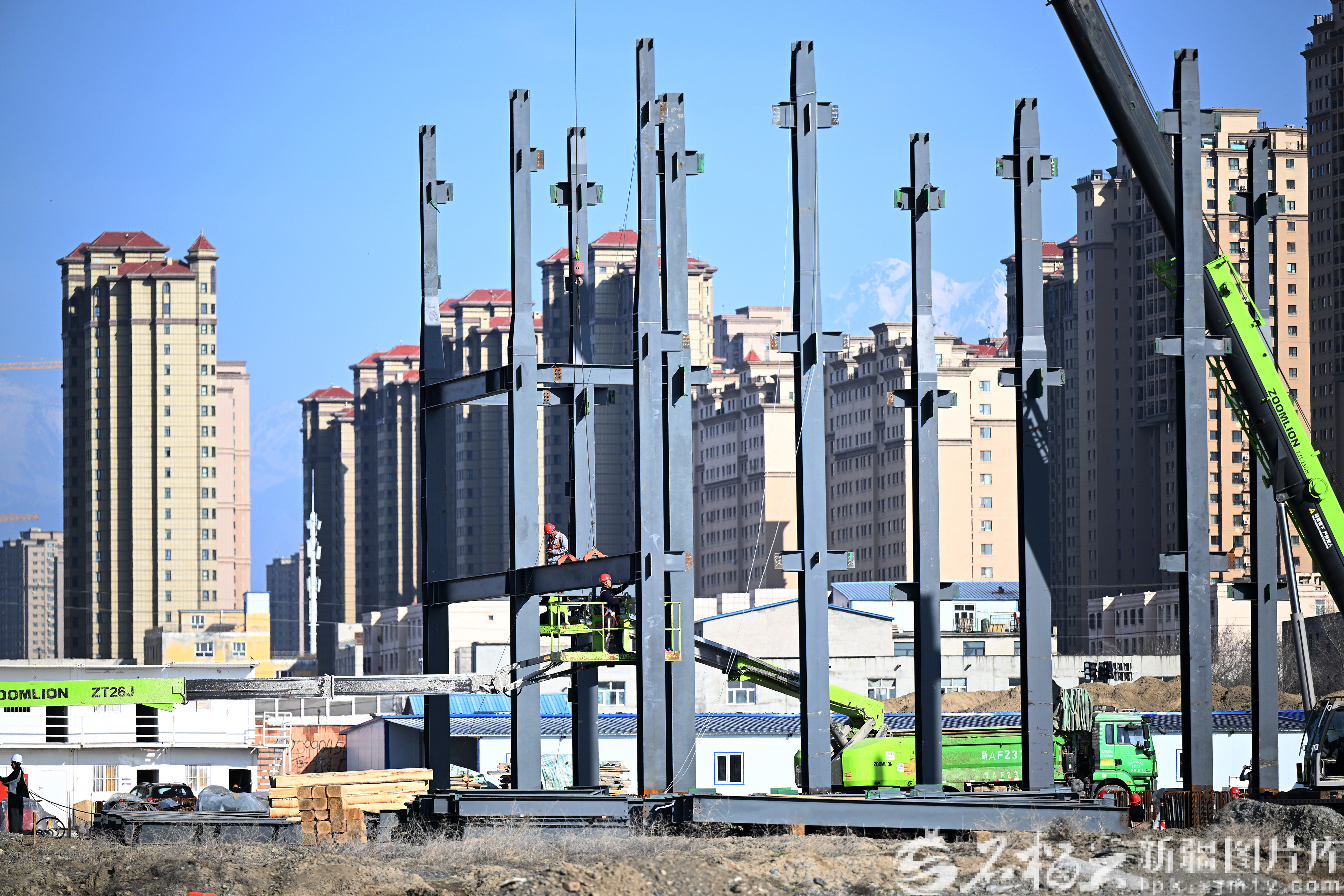 4月2日,工作人员在国威通航(低空经济)产业园项目建设工地施工。石榴云/新疆日报记者 邹懿摄